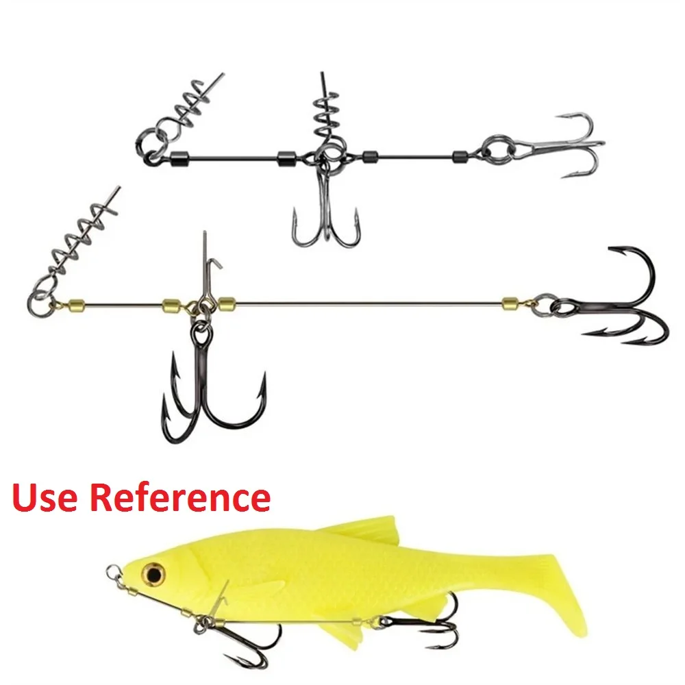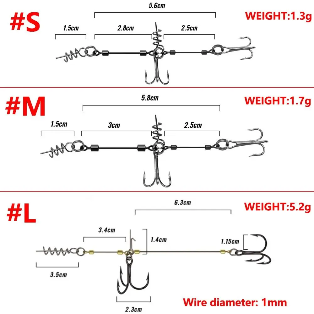 Configuración: Se utiliza un pasador de bloqueo de resorte grande para fijar el señuelo. Los tres ganchos de alta calidad son fuertes y afilados. El alambre de acero de una pieza giratorio se puede utilizar para una rotación de 360 °. La hebilla antideslizante ayuda al señuelo fijo. El anillo doble aplanado es más sólido y soporta mayor peso.