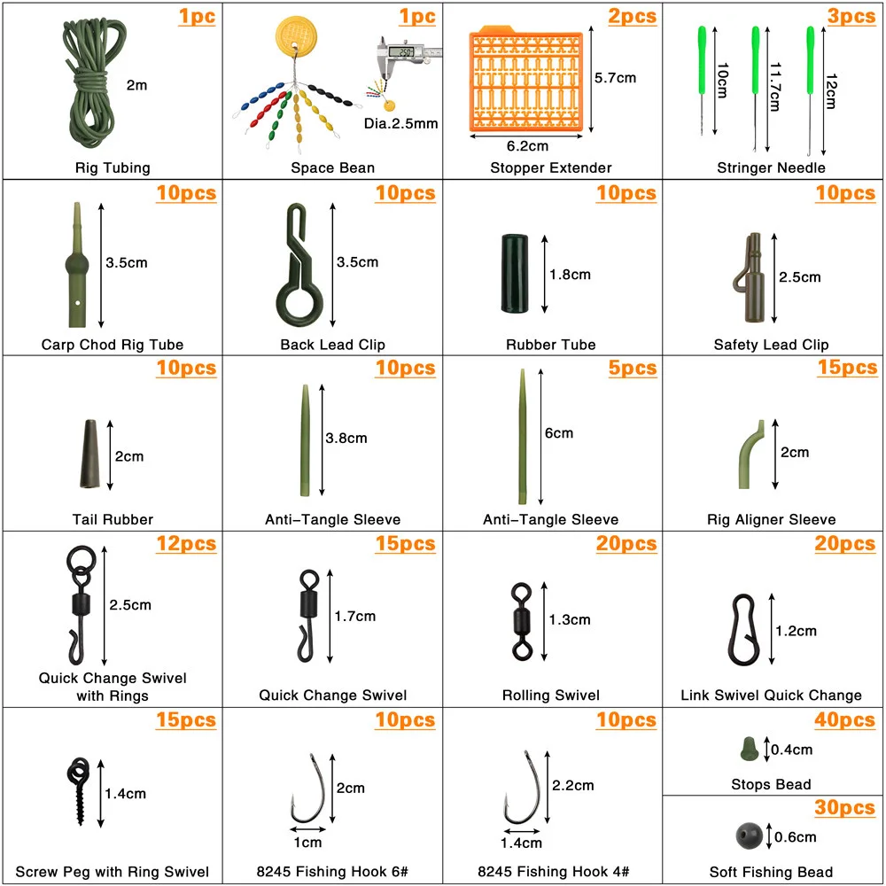 259 Uds juego de aparejos de pesca de carpa mate Cambio rápido giratorios Snap Anti enredos manga carpa plomo clips Chod Rig conector Accesorios