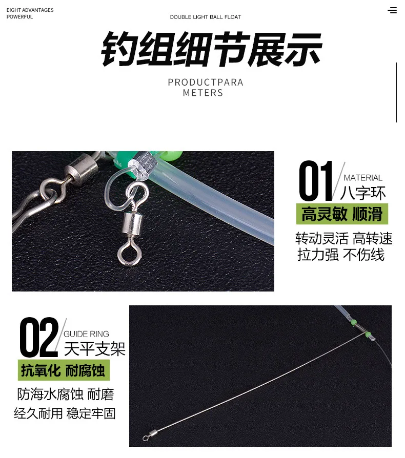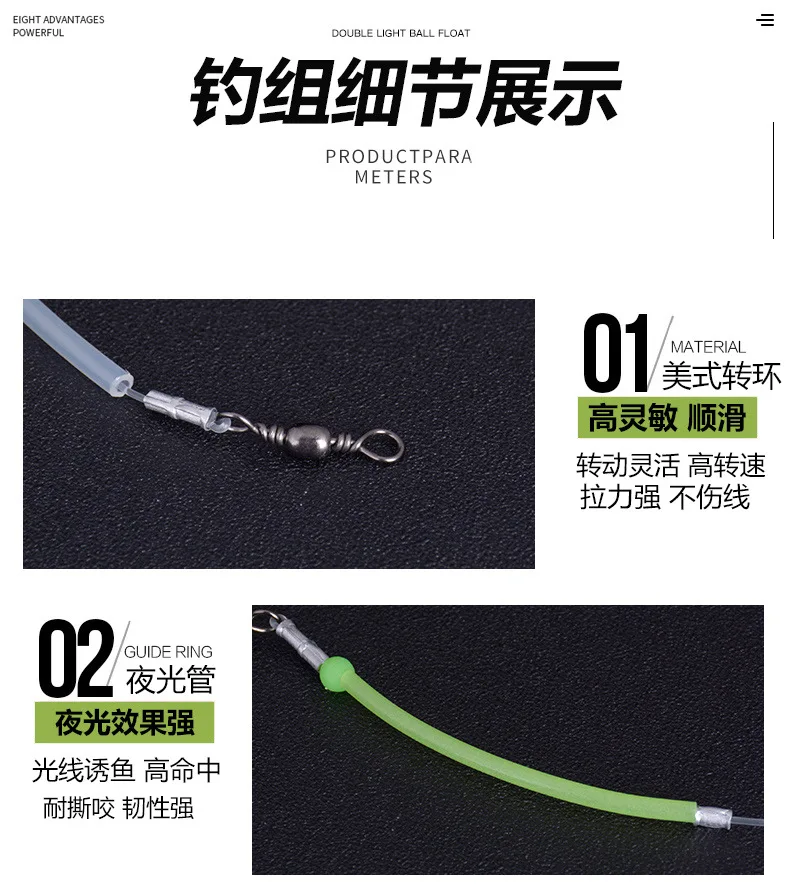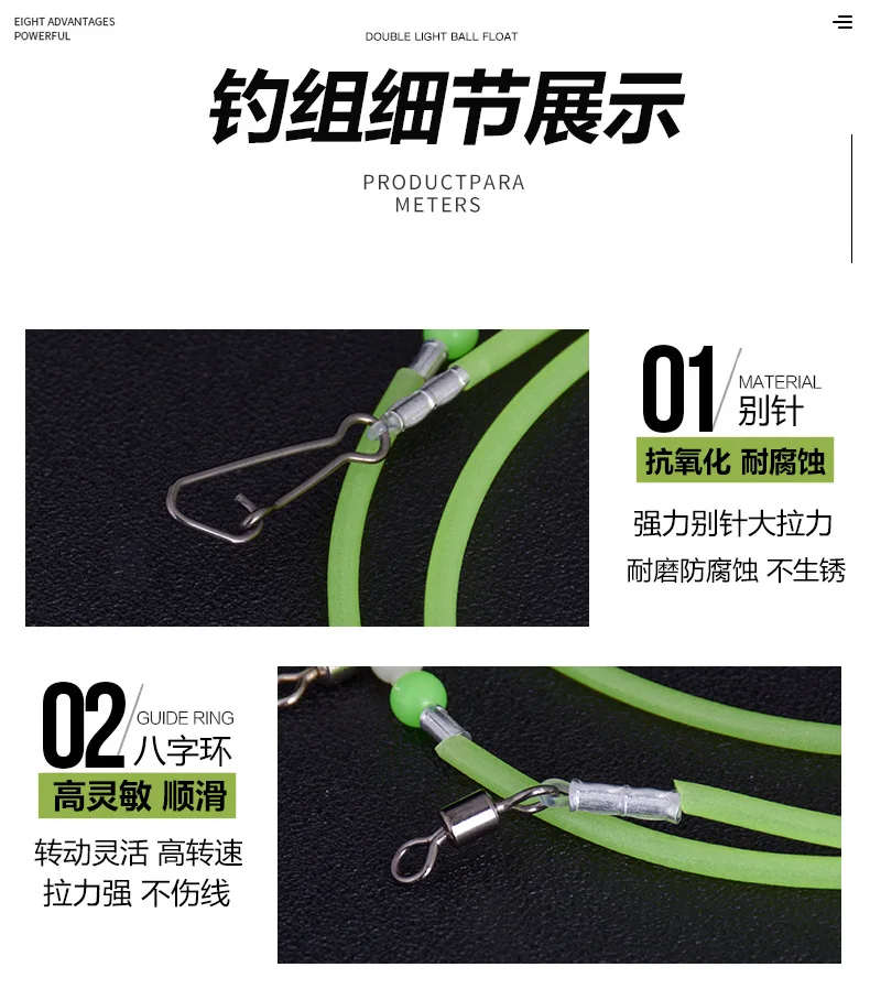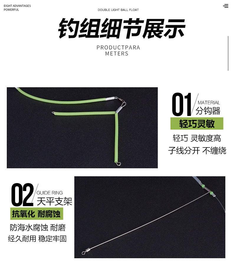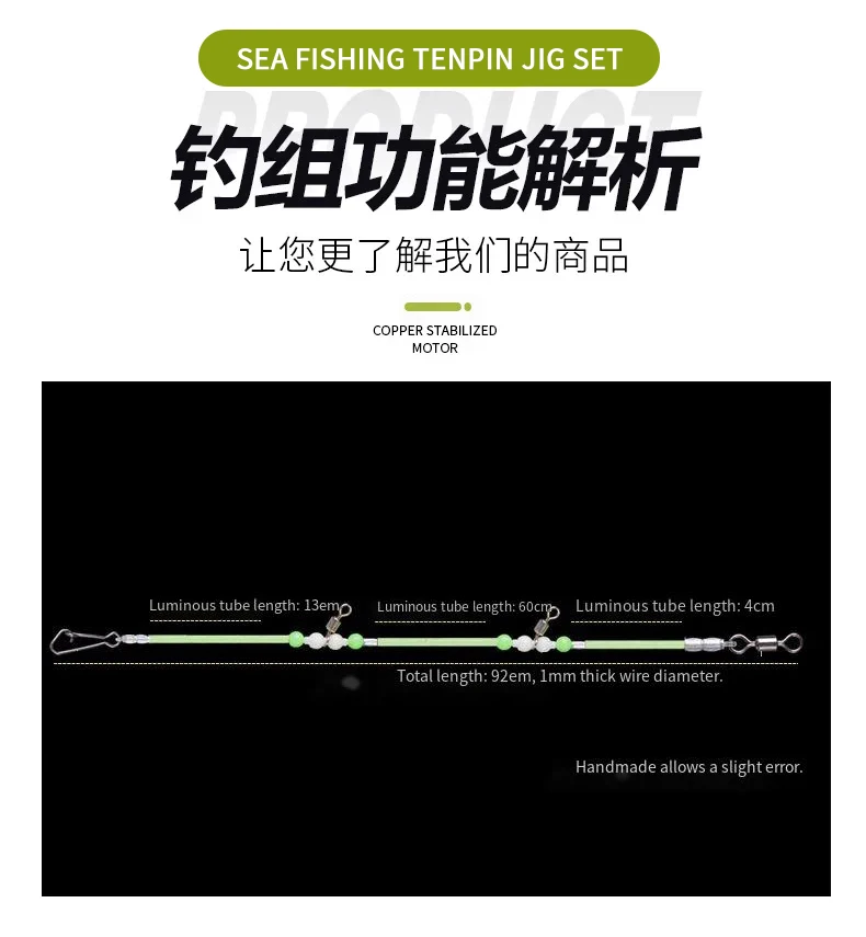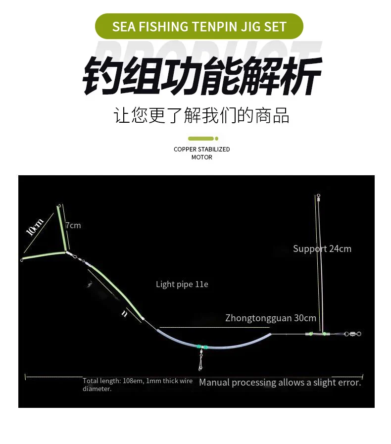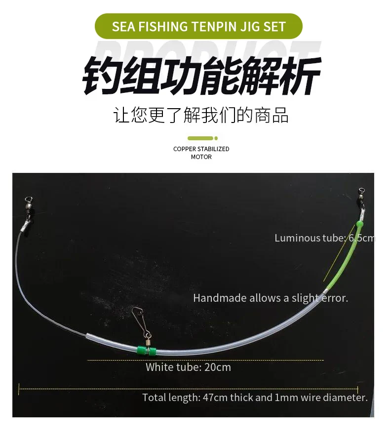 Juego de aparejos de pesca en el mar, anzuelo tándem, antienredos, Tenpin luminoso, sublínea de fruta blanca, PD