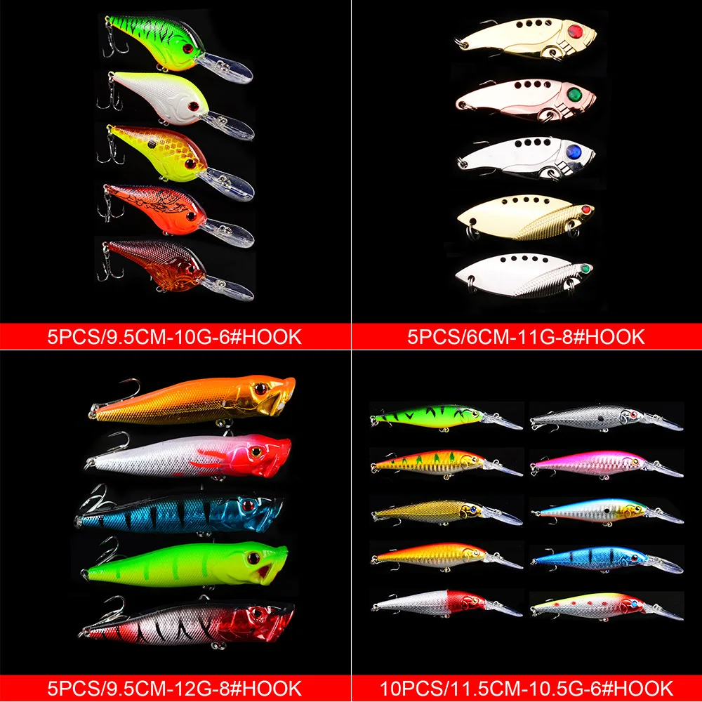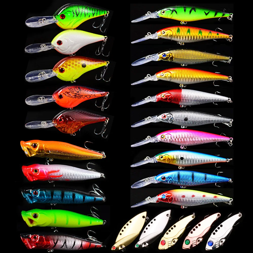 Juego de aparejos de señuelo de pesca, cebo duro Artificial giratorio flotante, Crankbait Wobblers Spinner, anzuelos que se hunden, 25 uds.