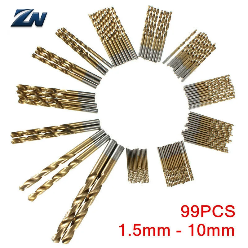 Juegos de brocas métricas de acero de alta velocidad de 99 para metal endurecido, acero inoxidable, hierro fundido, madera y plástico