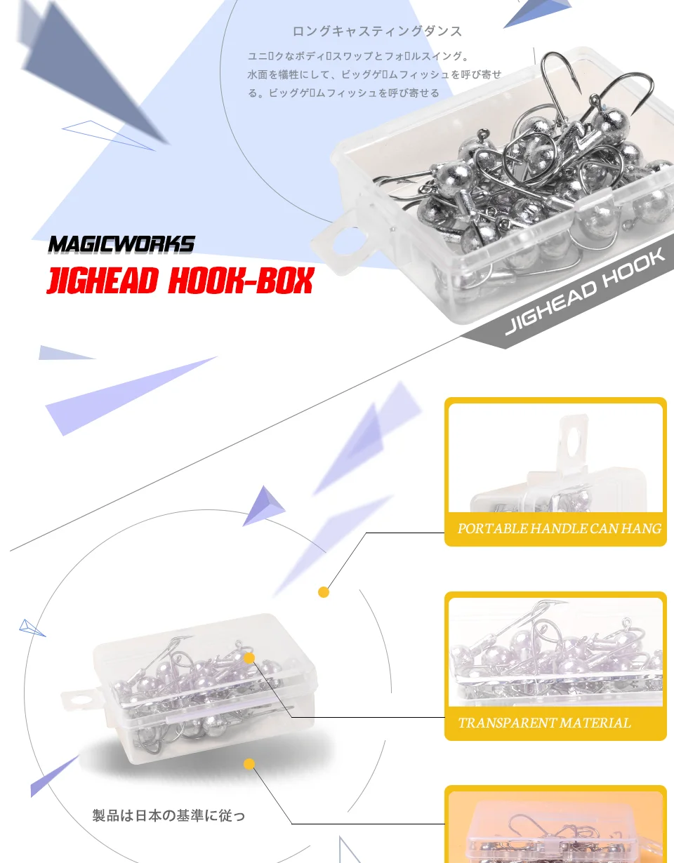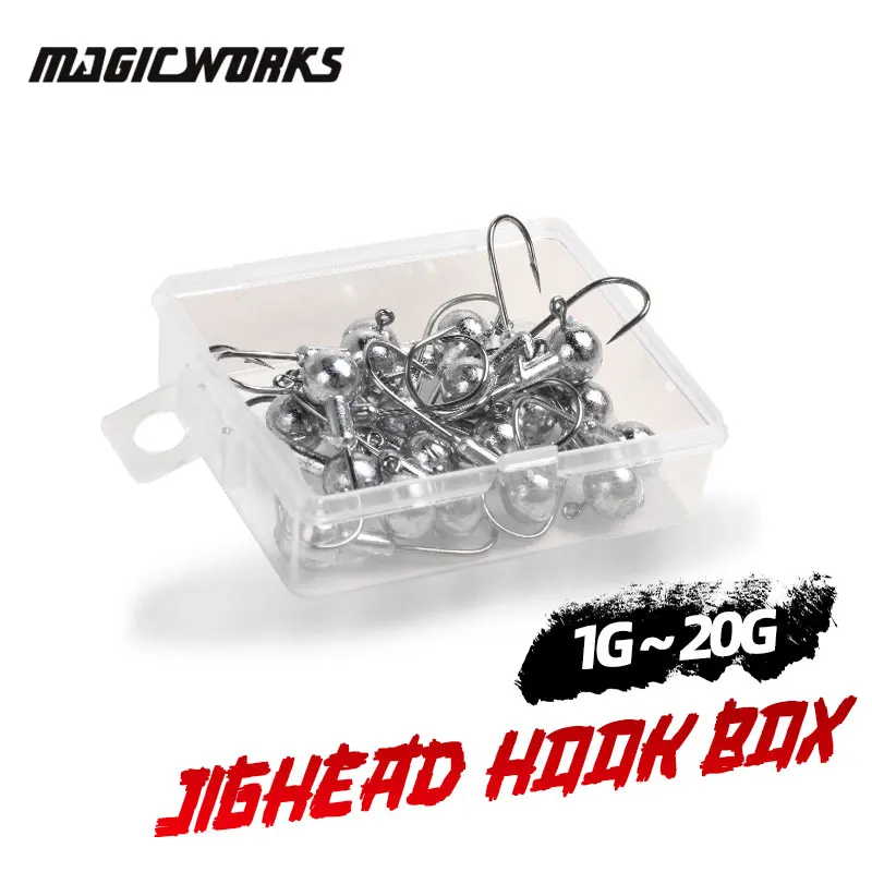 Magic Works Jig Head Anzuelos de pesca afilados 1G 1,5G 2G 2,5G 3,5G 5G 7G 10G 12G 14G 20G Micro Jigs Accesorios de pesca Caja de cebo