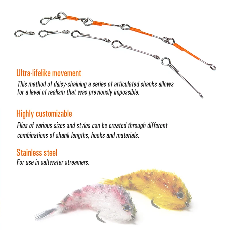Features:This is a whole set chocklett’s articulated fish spine&shank, allows you to creat multi-jointed, highly articulated streamer. The long extend hook shanks allows you to tie them down further along the shank,