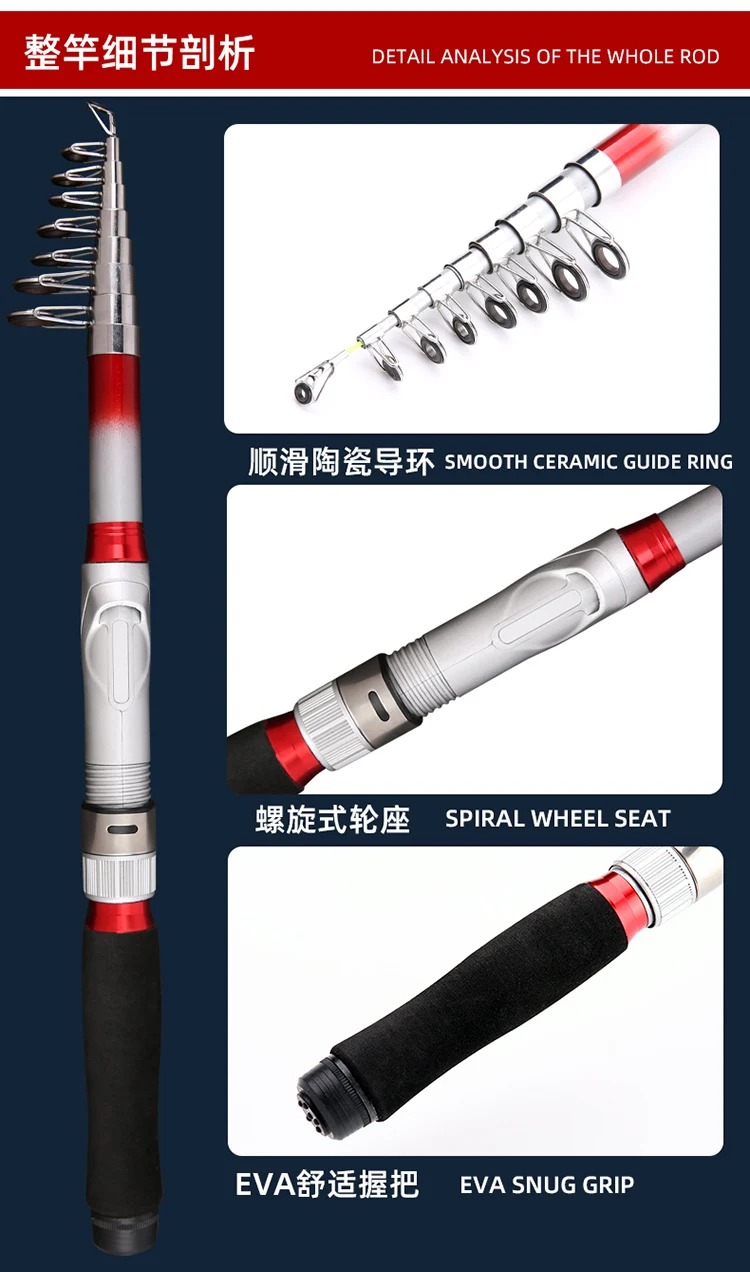 Presentamos nuestra caña de pescar de carpa de 1,8 M-3,6 M, ¡la solución perfecta para todas sus necesidades de pesca!Fabricada con fibra de carbono + FRP de alta calidad, esta caña de pescar no solo es resistente y duradera, sino también liviana para un fácil manejo.La función de longitud ajustable le permite adaptarlo a diversas situaciones de pesca.