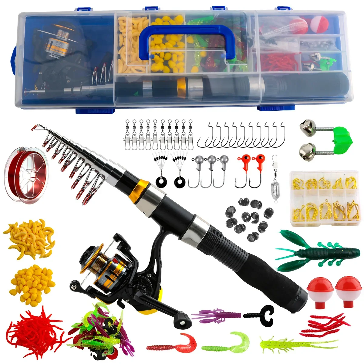 Juego de caña de pescar en el mar, carrete de mano, caja de plástico de 2,1 M, rueda subposte de carretera, caja de engranajes de pesca de viaje, gancho de cebo duro, cebo blando