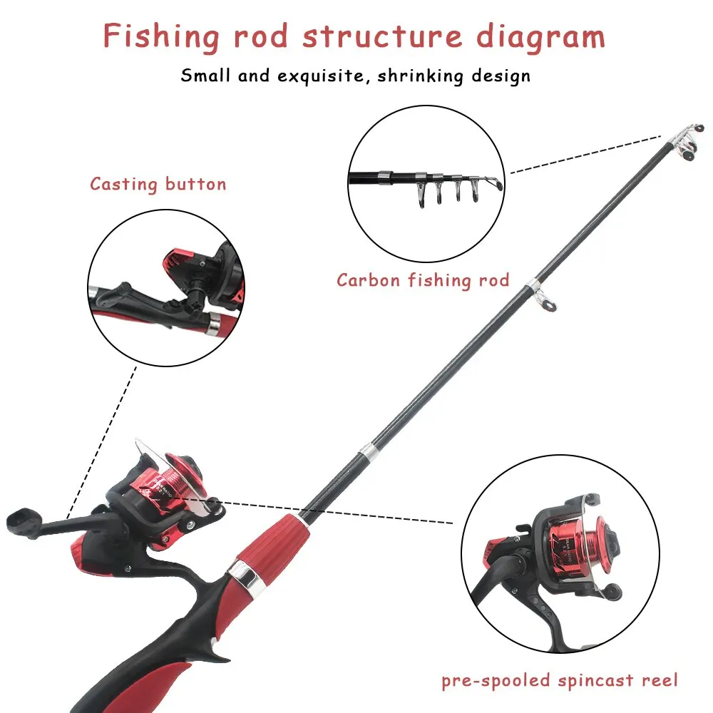 • Caña De Pescar Telescópica :La caña de pescar telescópica hace que sea fácil para los niños pescar en diferentes cuerpos de agua, incluyendo arroyos, lagos y océanos.