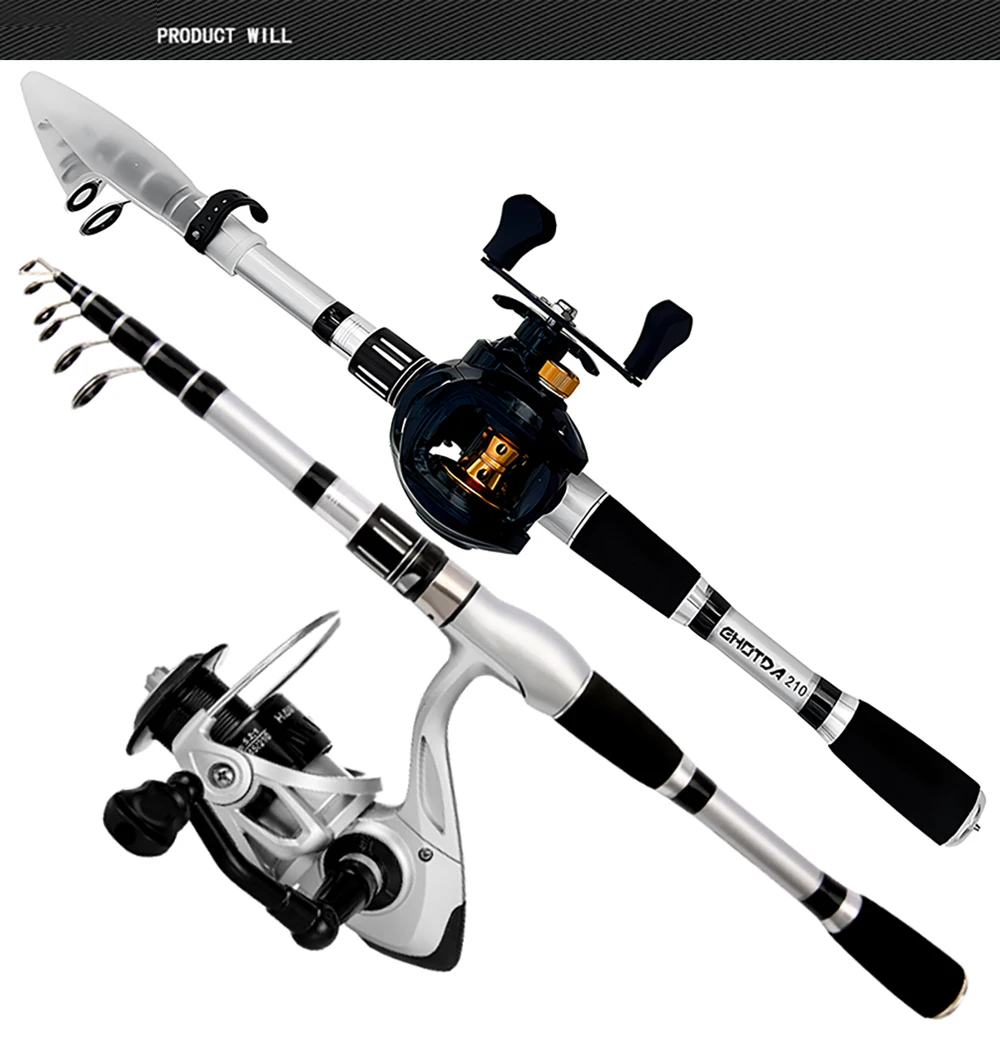 Juego de cañas de pescar telescópicas de fibra de carbono 1,5-2,4 M señuelo 2000-4000 Kit de carrete giratorio Pesca