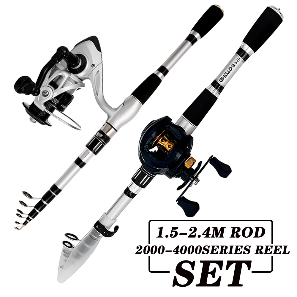 Juego de cañas de pescar telescópicas de fibra de carbono 1,5-2,4 M señuelo 2000-4000 Kit de carrete giratorio Pesca