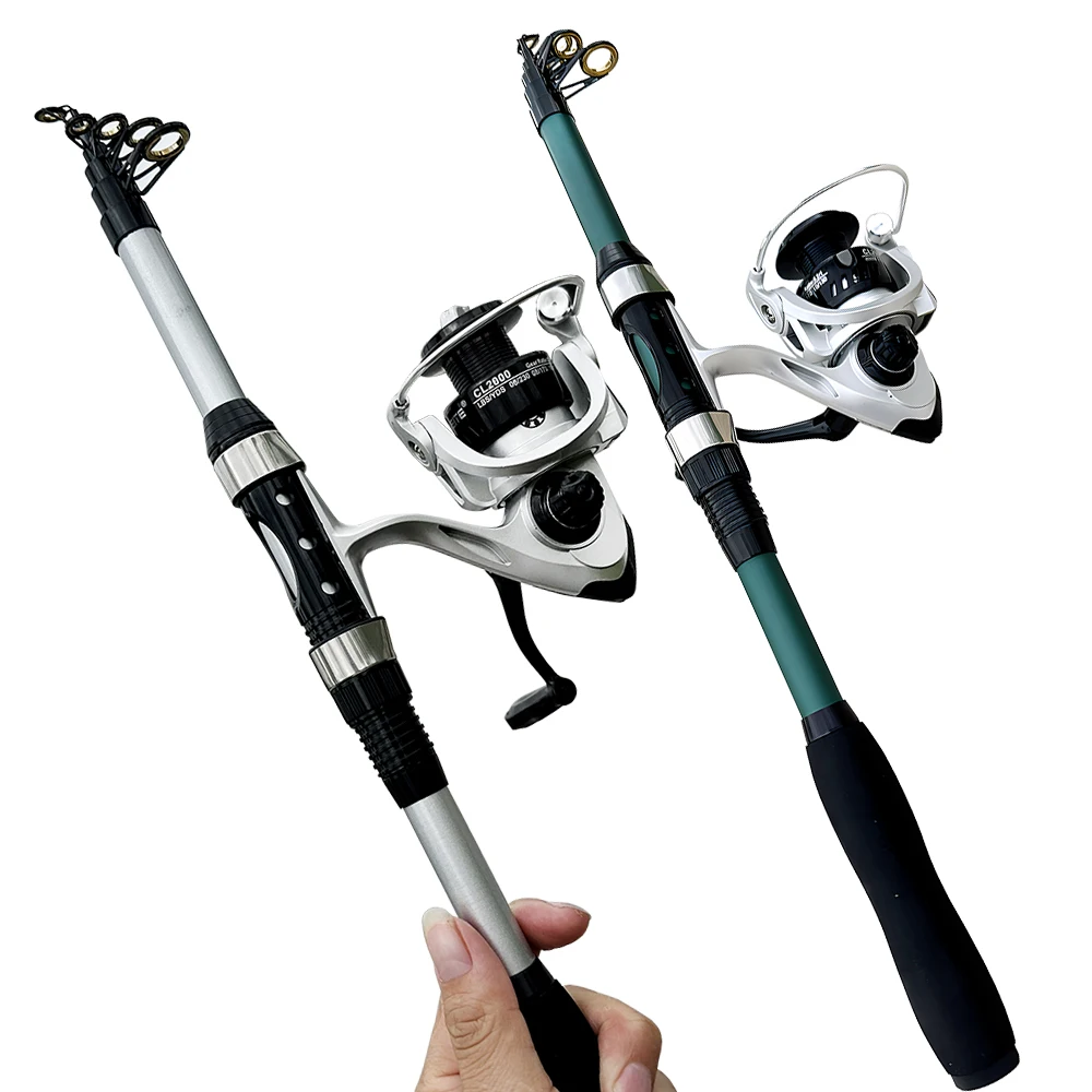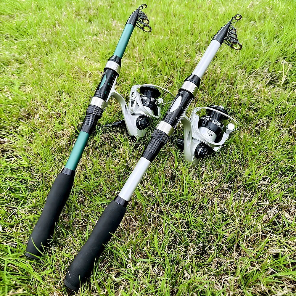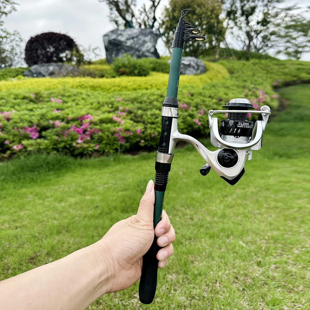 Juego de caña de pescar telescópica y carrete, alimentador de 1,8 m, caña de pescar de mar y relación de engranaje 5,2: 1, carrete giratorio para cebo de pesca en la playa, 5-20g
