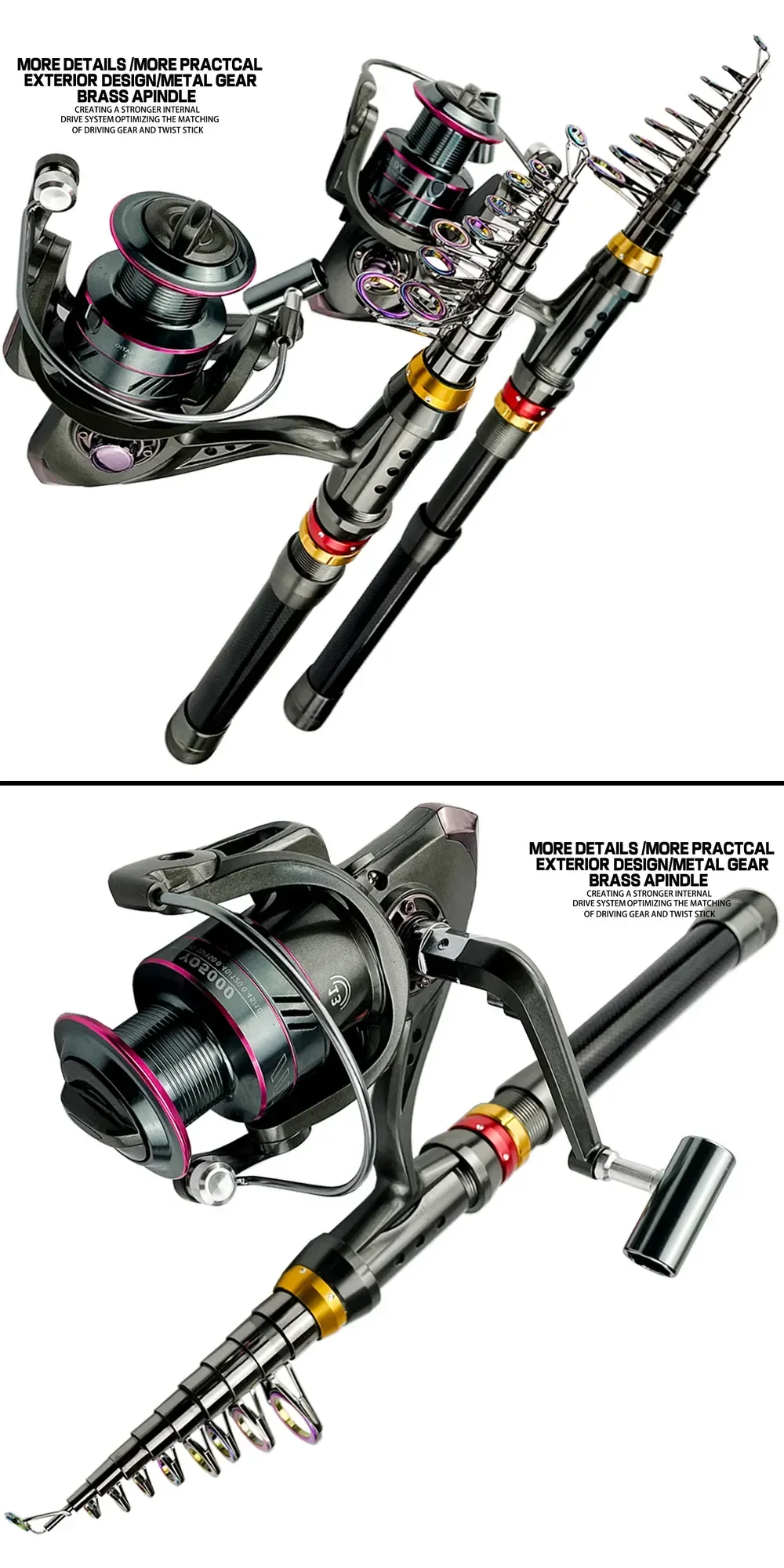 Combinación de caña de pescar telescópica y caña de pescar con rueda de carrete de pesca