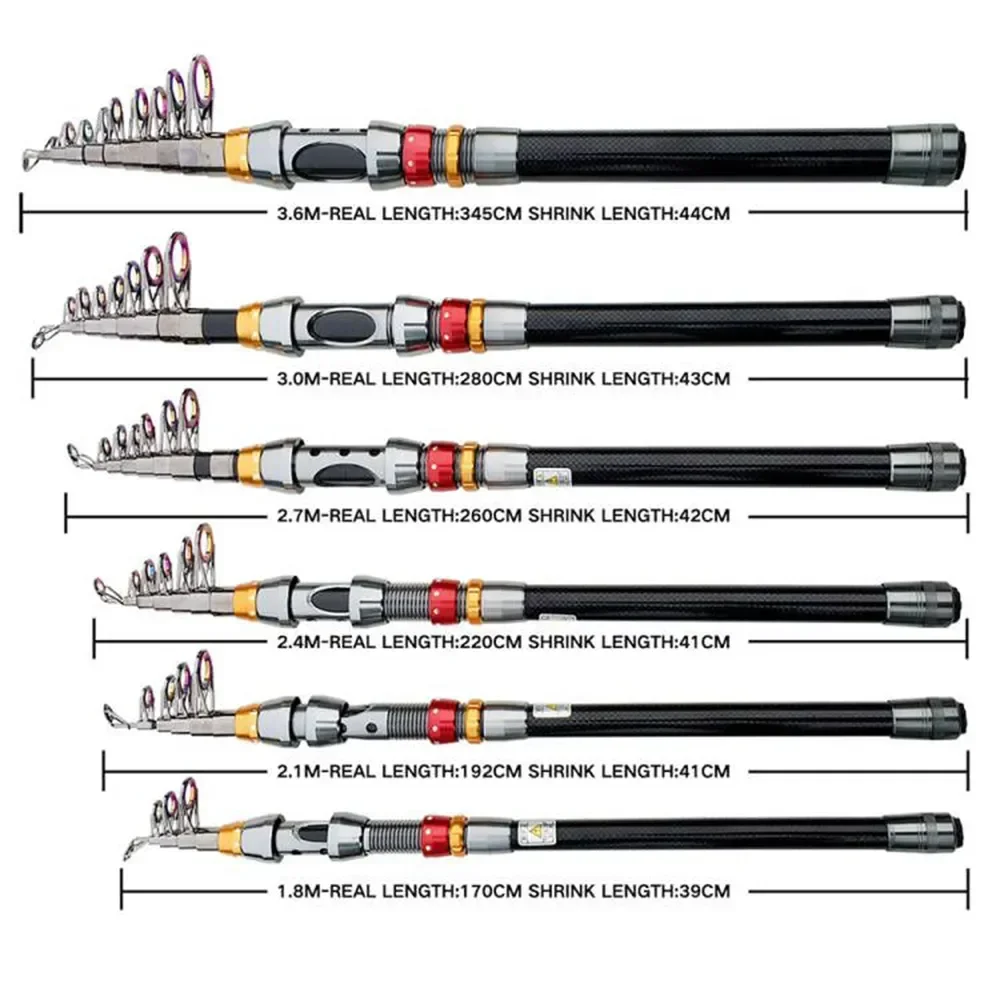 Caña de pescar giratoria de fibra de carbono de 1,8-3,6 m, carrete 13BB combinado, Kit de carrete giratorio de caña de pescar telescópica, resistencia máxima de 3-8kg, PescaTABLA DE TAMAÑOS