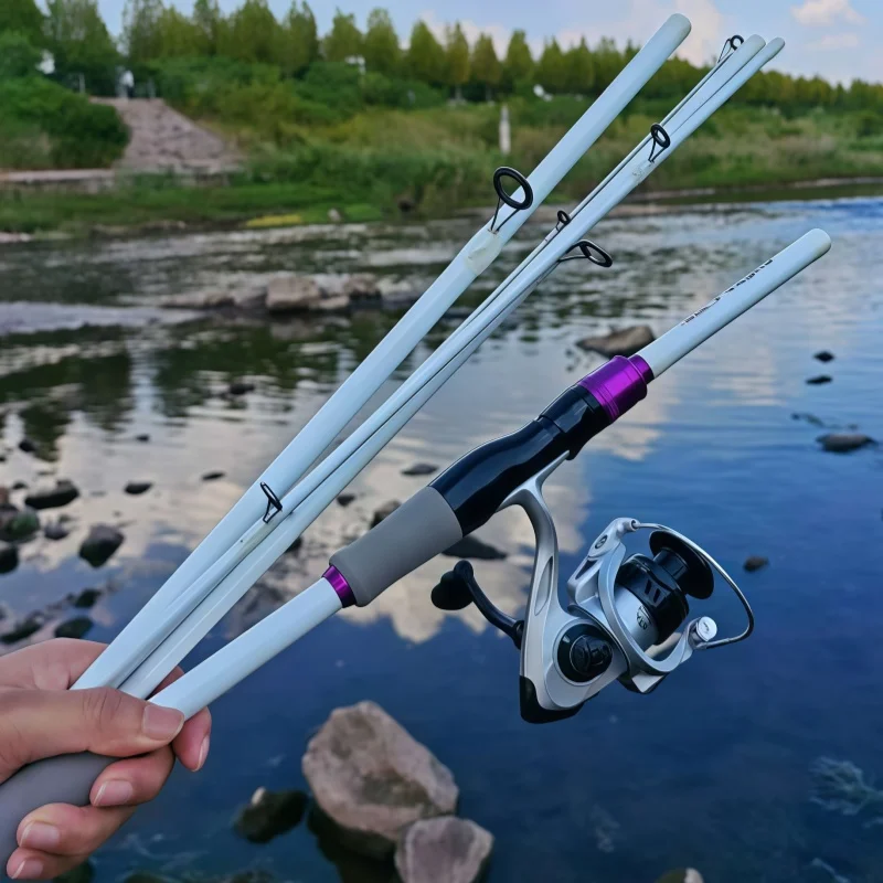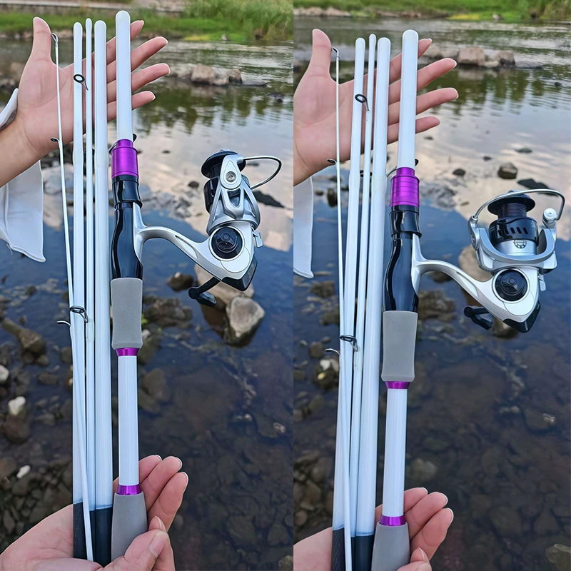 Juego de cañas de pescar giratorias de 4/5 secciones, caña de señuelo de carbono duro y carrete de Baitcasting 7,2: 1/5,2:1, arrastrar máximo de 8 KG para pesca de lubina y Lucio