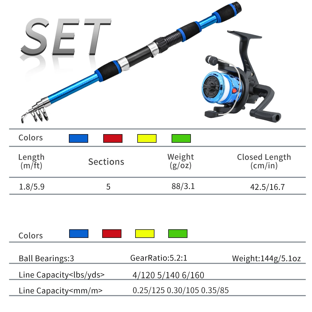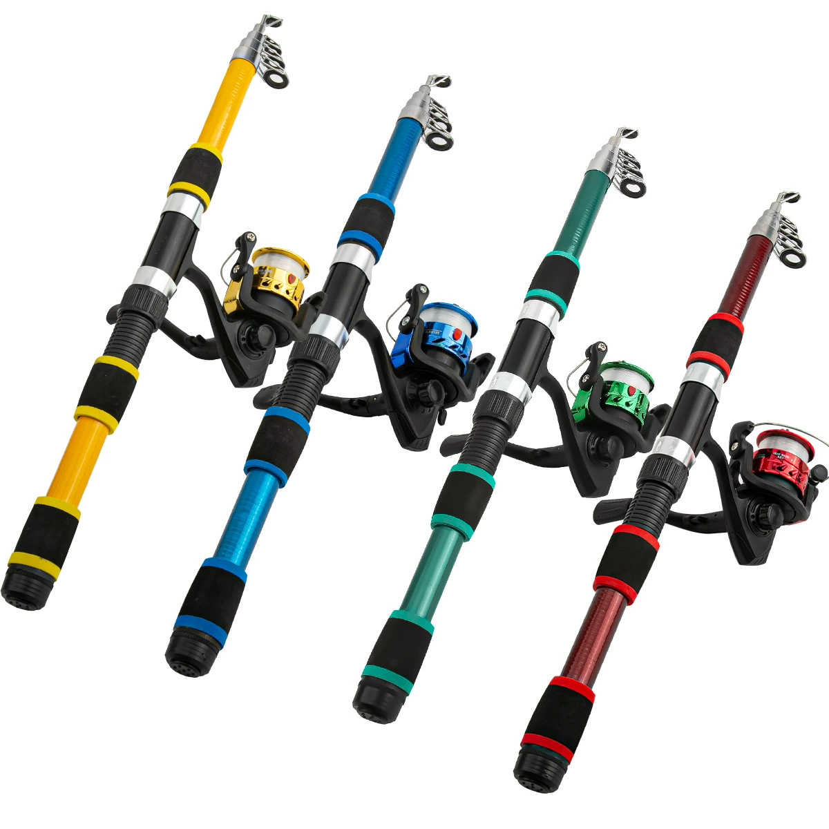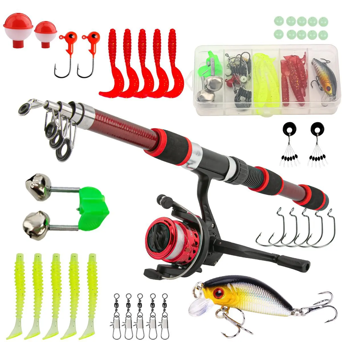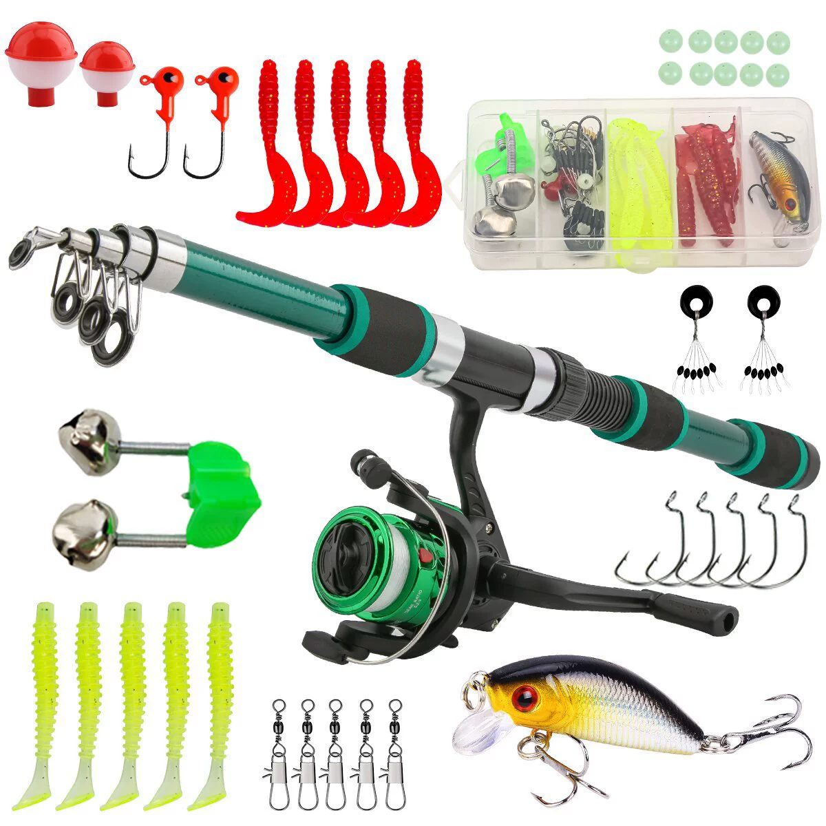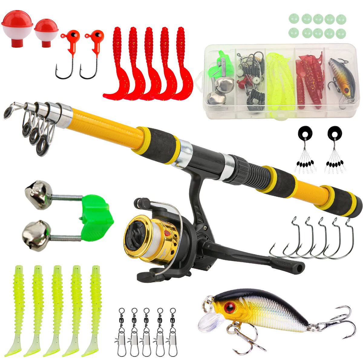 Juego de cañas de pescar, kits combinados de cañas de pescar y carretes giratorios, cebos de caña giratoria telescópica de 1,8 M, juego de señuelos, anzuelos de equipo de pesca de viaje