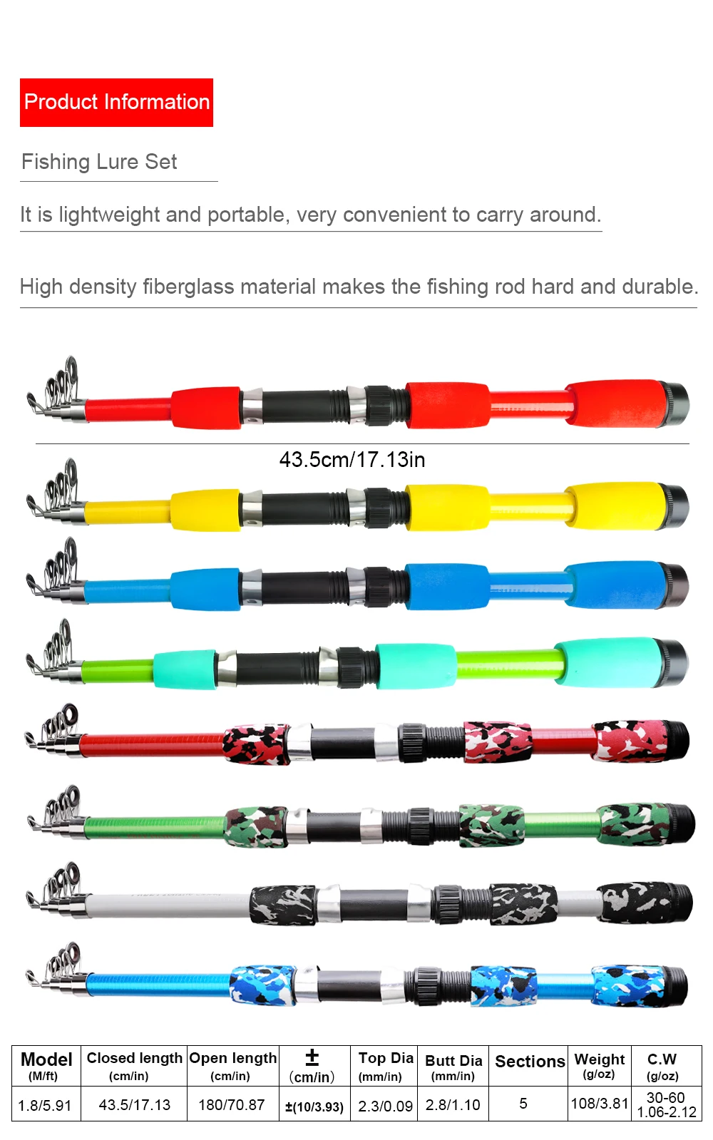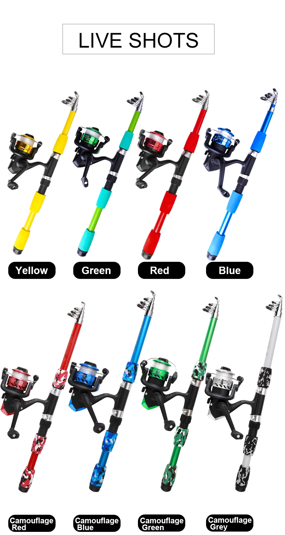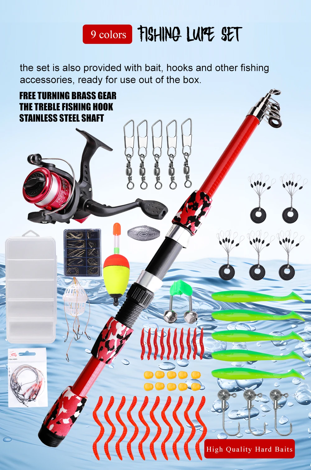 Juego de cañas de pescar NGB, kits completos de 1,8 m con caña de pescar telescópica y carrete giratorio, cebos, anzuelos, juego de postes de viaje