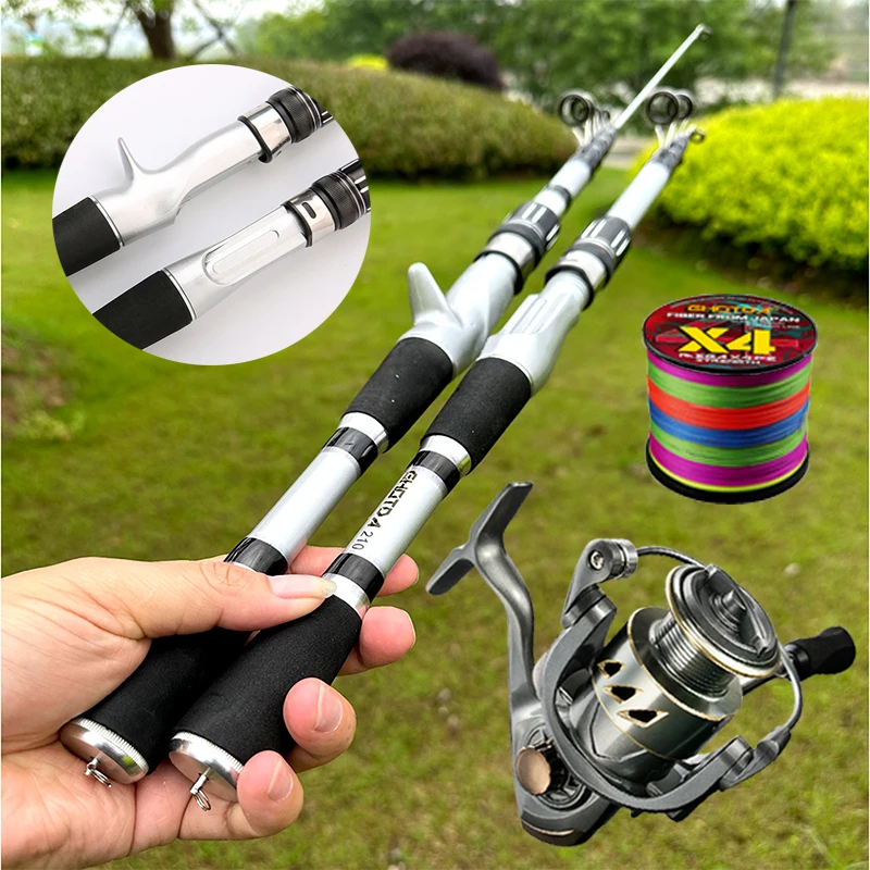 Telescopic Lure Fishing Rod Set 1.5-2.4m Ultralight Travel Carbon Pole and 2000-4000 Spinning Reel Max Drag 8KG with Line Kits