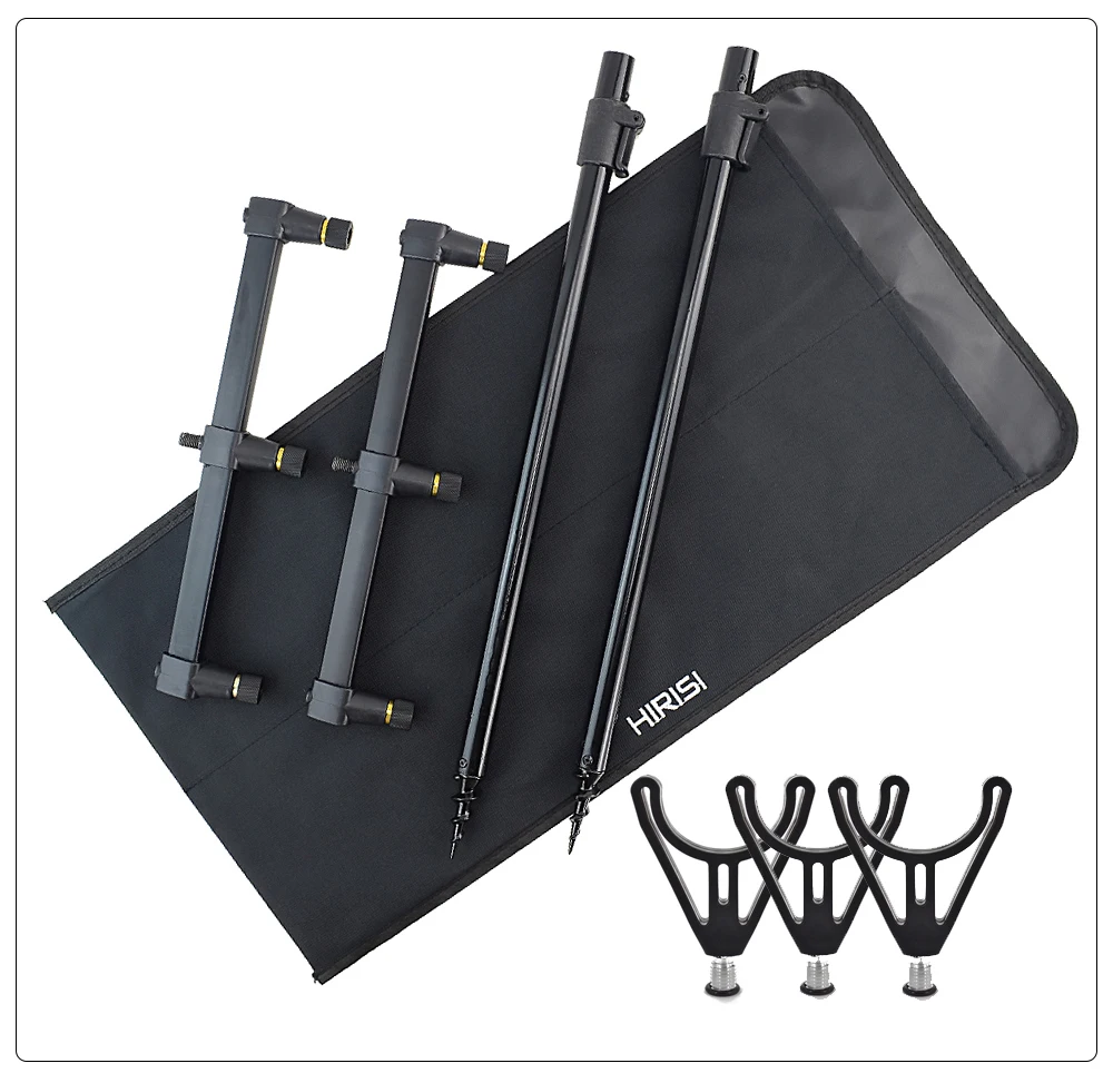 Este juego de cañas de pescar para carpas fue hecho con aleación de aluminio, que incluye 1 bolsa de 2 palos de Banco de piezas y 2 barras de zumbido de las piezas, son más fuertes y de un color de acabado muy agradable, perfecto para la pesca de carpa.