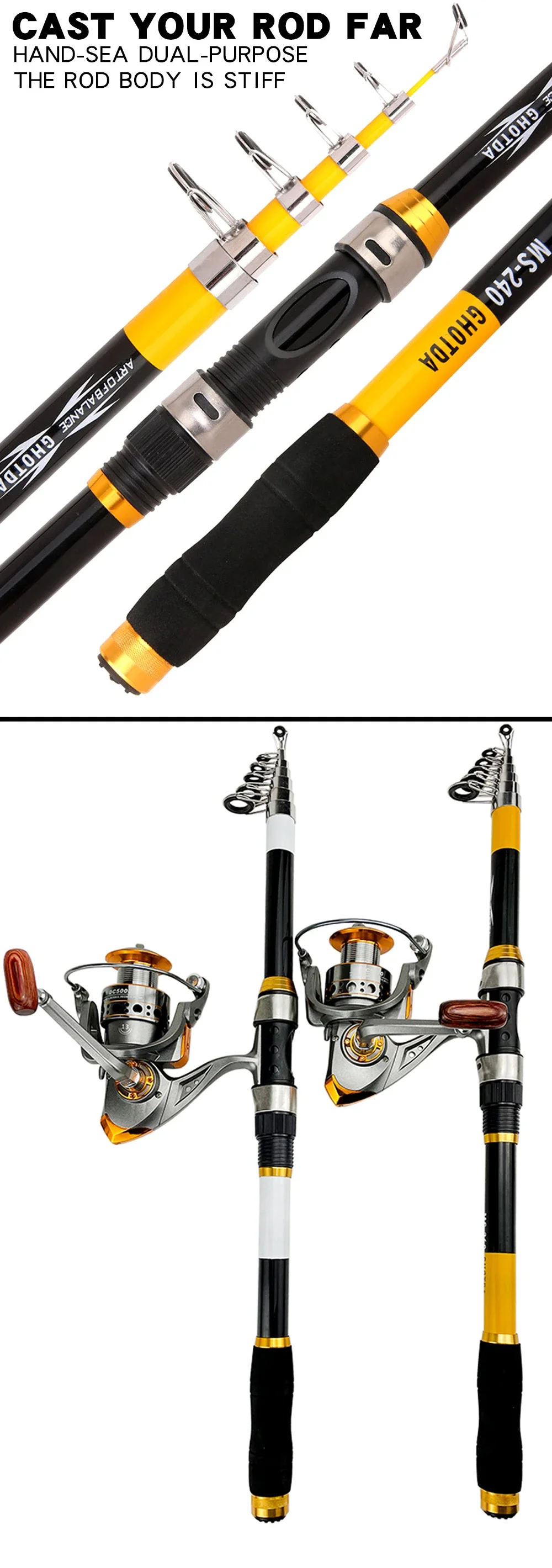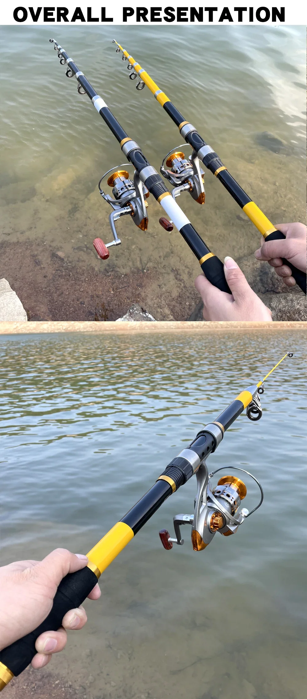 3 Para compras de un valor igual o superior a US $50 ICMS y se aplican impuestos.4 El precio de este producto no incluye impuestos, por favor, pague el ICMS y los aranceles cuando el paquete llegue a la aduana de Brasil.Juego de carrete y caña de pescar giratoria de fibra de carbono 2,1-3,6 M caña de pescar telescópica portátil y carretes giratorios 1000-5000Series