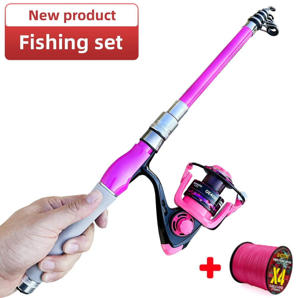 Juego de carretes de caña de pescar giratoria con señuelo de 1,5-2,4 m, mango EVA, caña de pescar telescópica de fibra de carbono, carrete de alta velocidad 5,2: 1 para principiantes