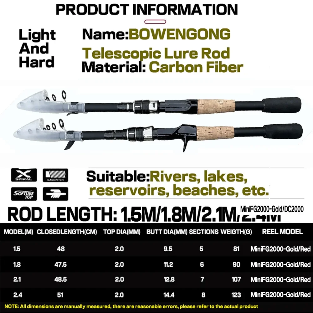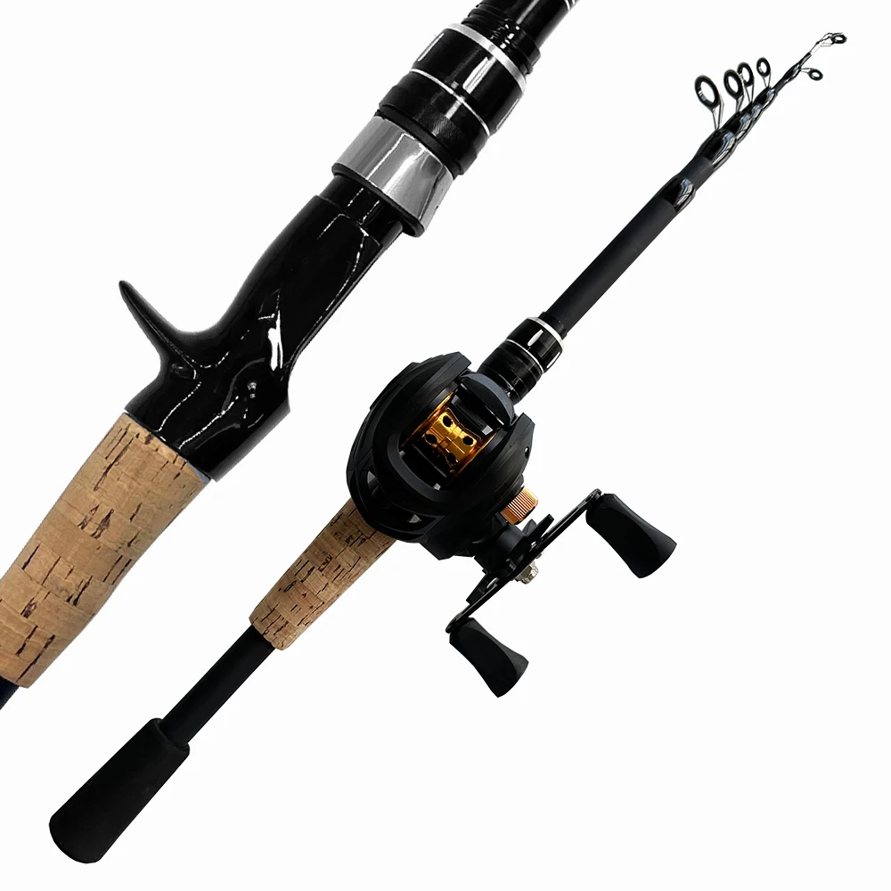 Juego de carretes y cañas de pescar telescópicas para Baitcasting, señuelo de carbono de 1,5-2,4 m, 8-25g, para pulpo y lubina