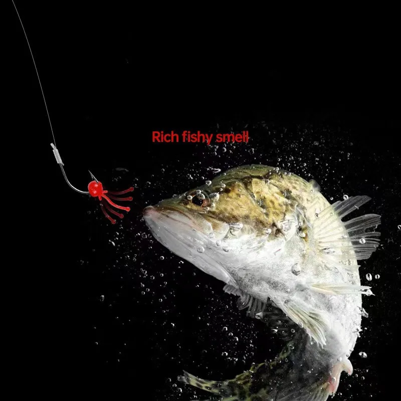 (3) Material TPR súper suave y de alta elasticidad, cebo colgante rápido, adecuado tanto para peces grandes como pequeños.
