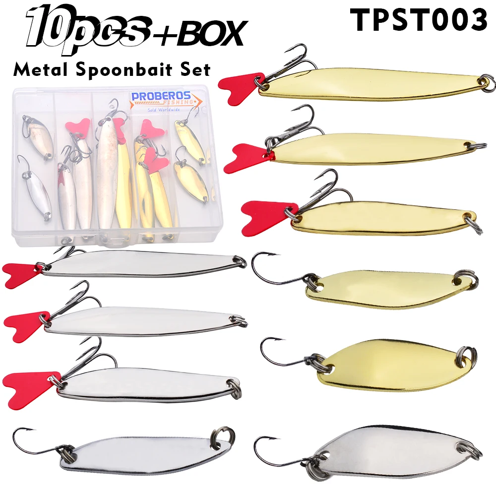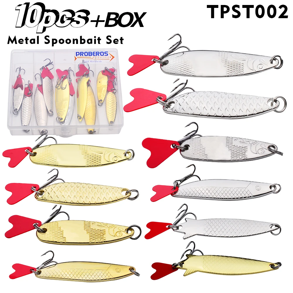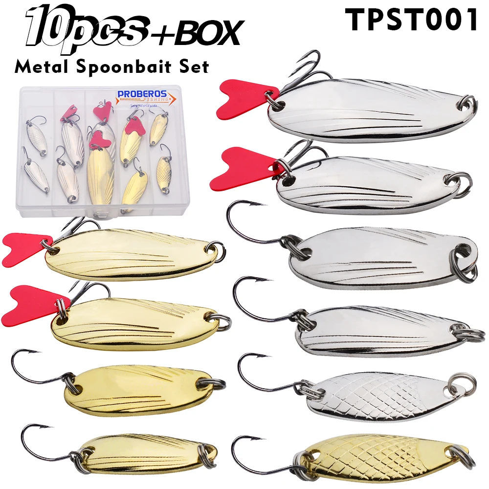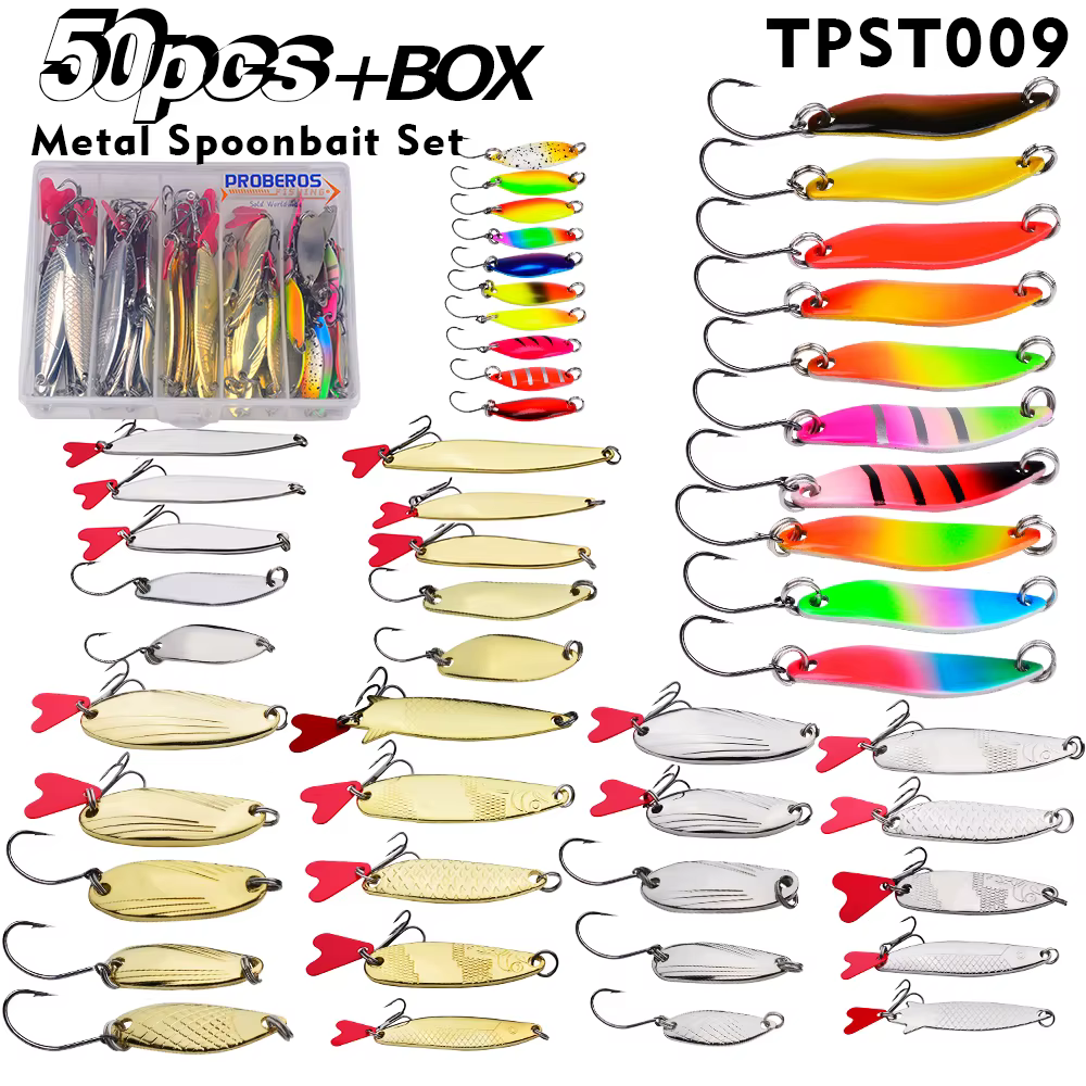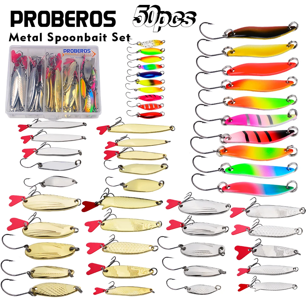 Juego de cebo de pesca giratorio artificial de alta calidad, cuchara de metal, accesorios de pesca al aire libre, 10-50 piezas
