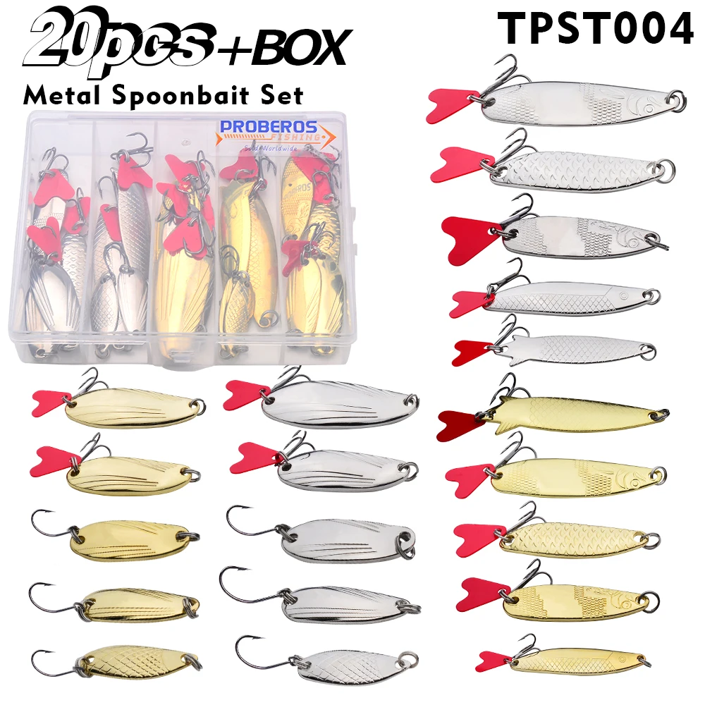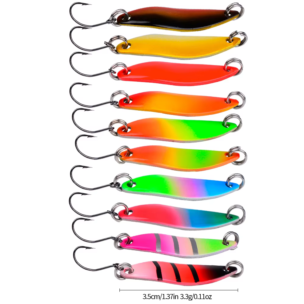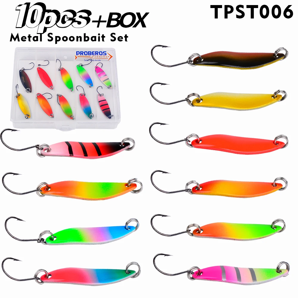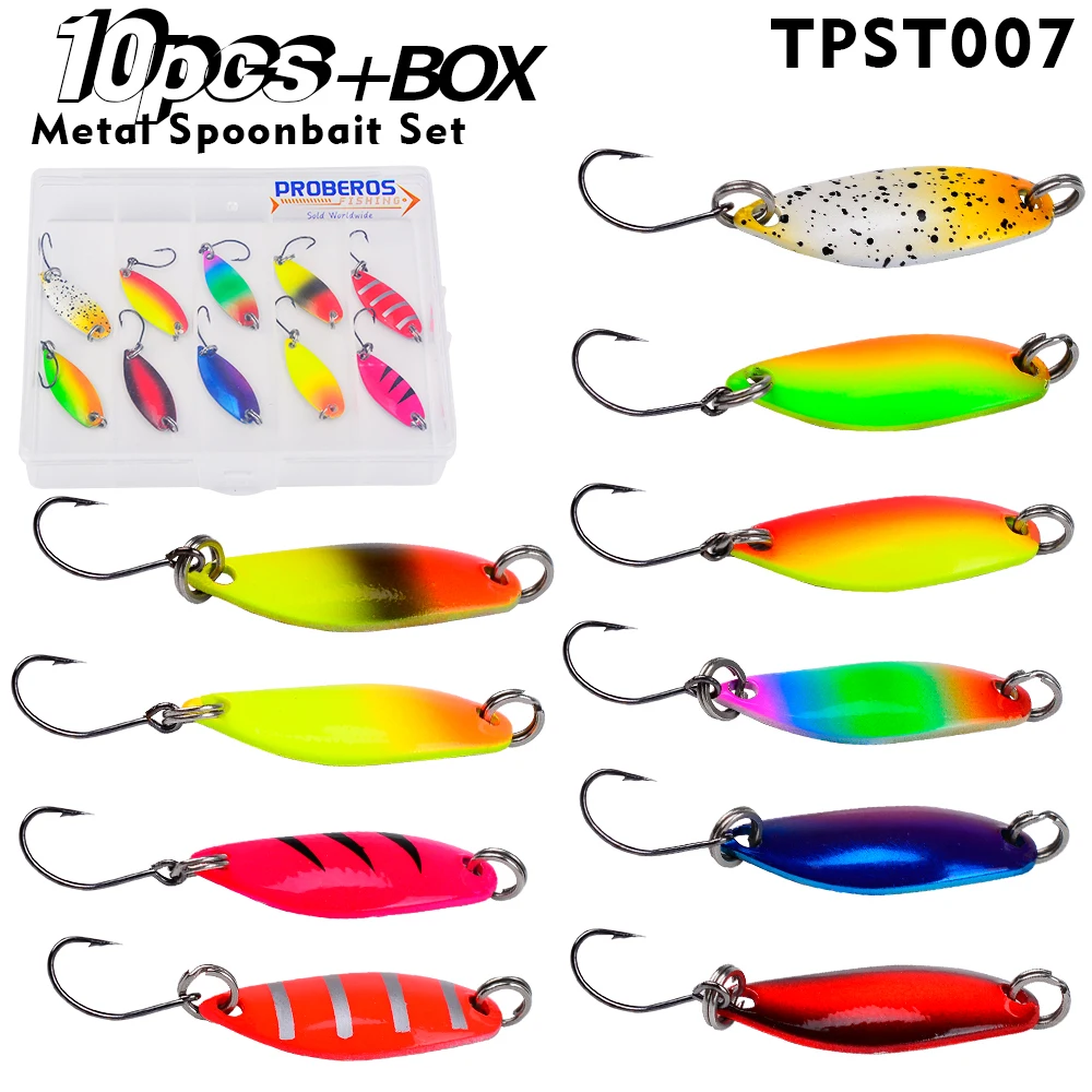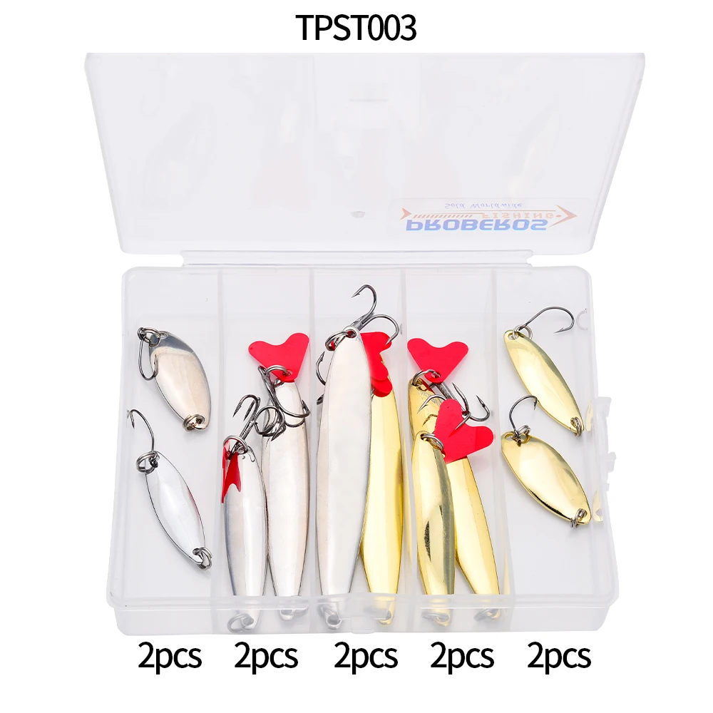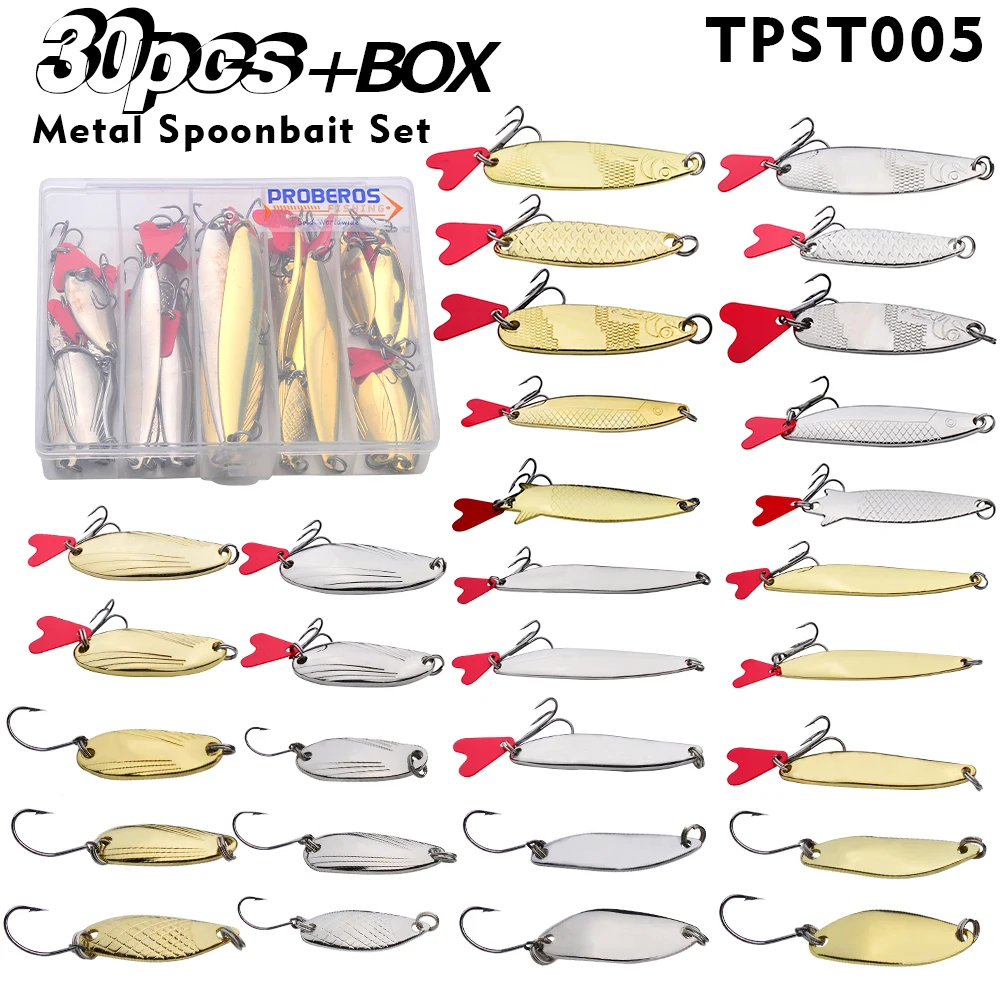 Juego de cebo de pesca giratorio artificial de alta calidad, cuchara de metal, accesorios de pesca al aire libre, 10-50 piezas