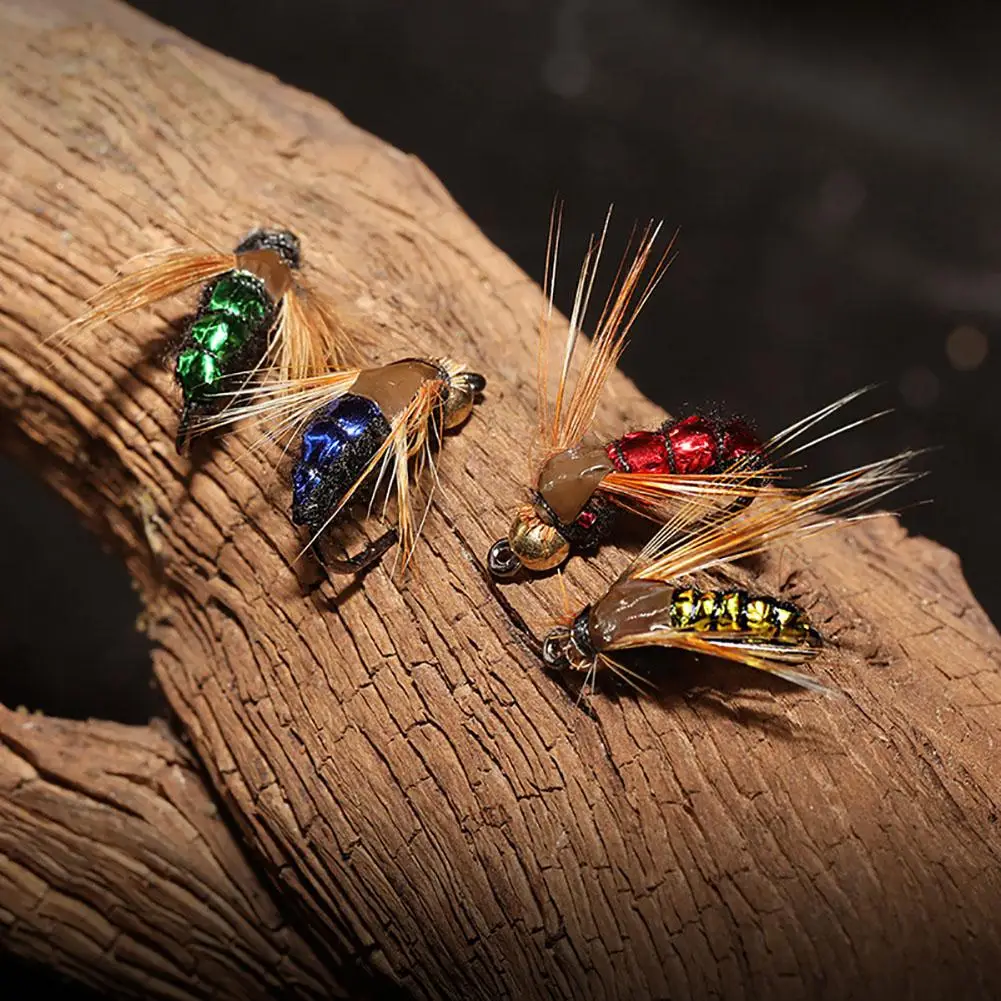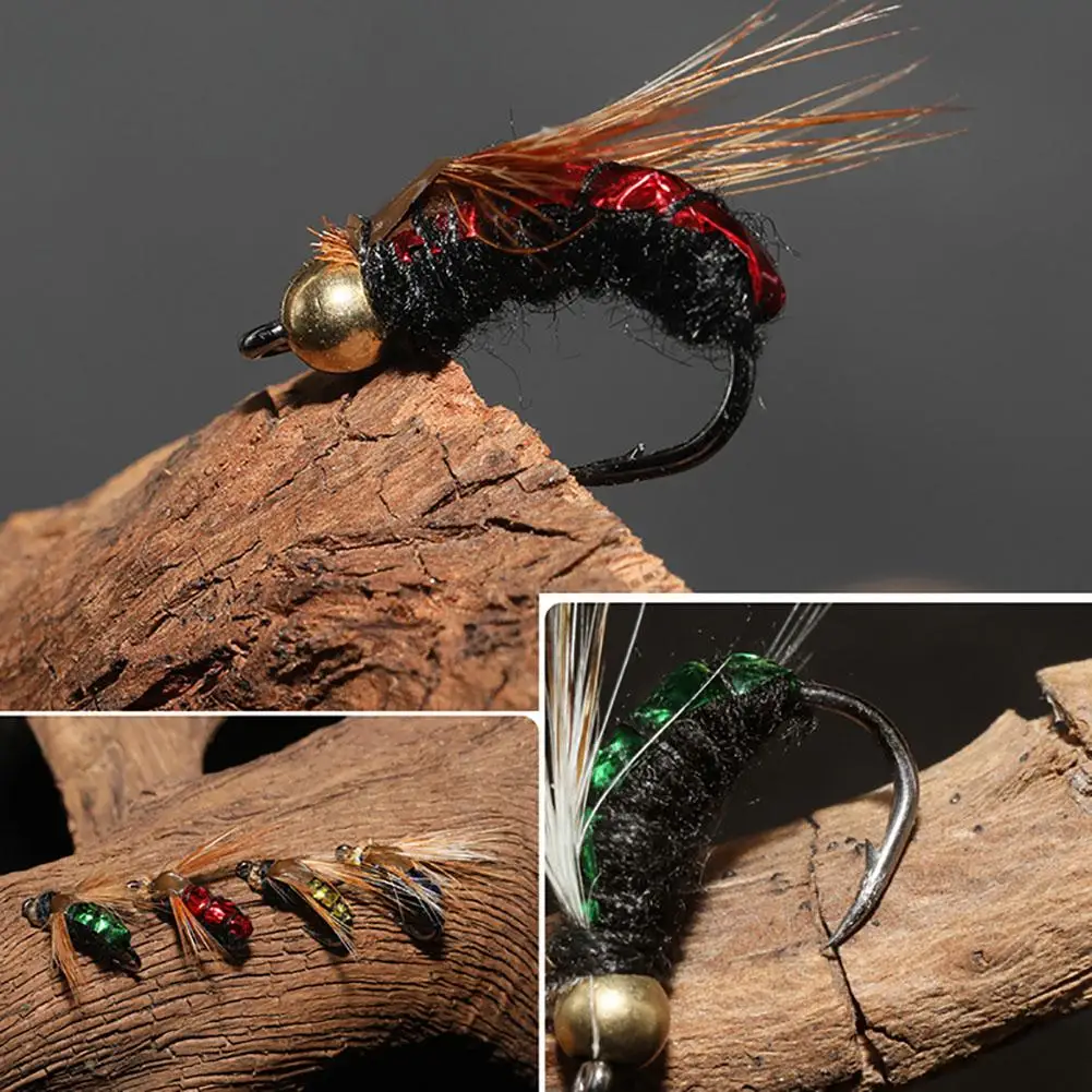Juego de 10 piezas de cebo de pesca de insectos artificiales con anzuelos de lengüeta, Kit de señuelo de pesca de hundimiento rápido para Perco de trucha