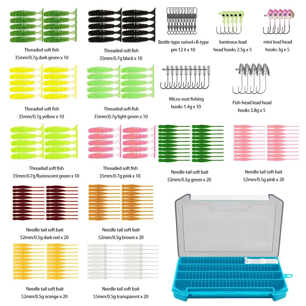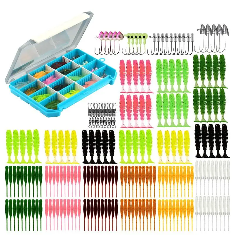 Juego de cebo blando de 216 piezas con gancho de Metal para Señuelos de Pesca de agua dulce de agua salada Kit regalo perfecto para pescadores