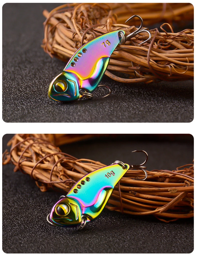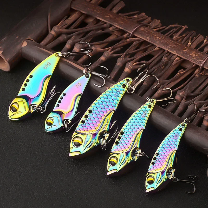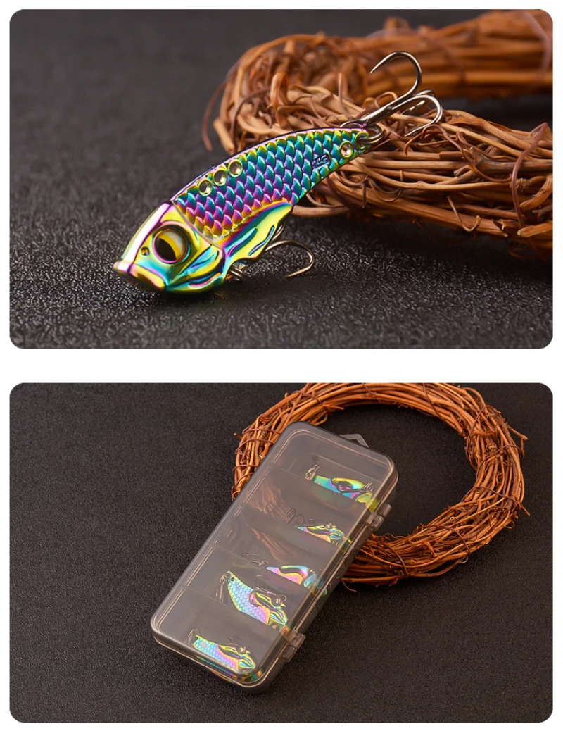 Juego de cebos de lentejuelas de colores, señuelo de simulación de Metal VIB de capa completa, con caja, 7g/10g/14g, 5 unids/lote