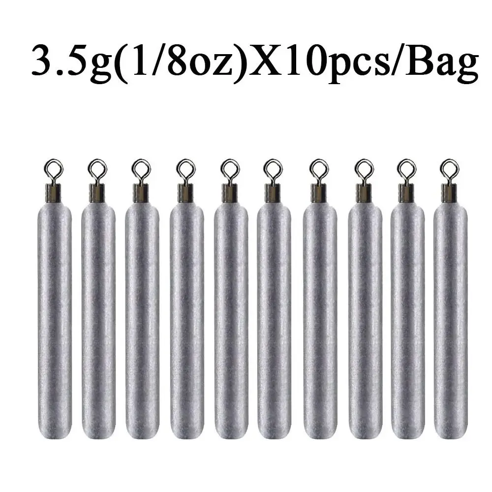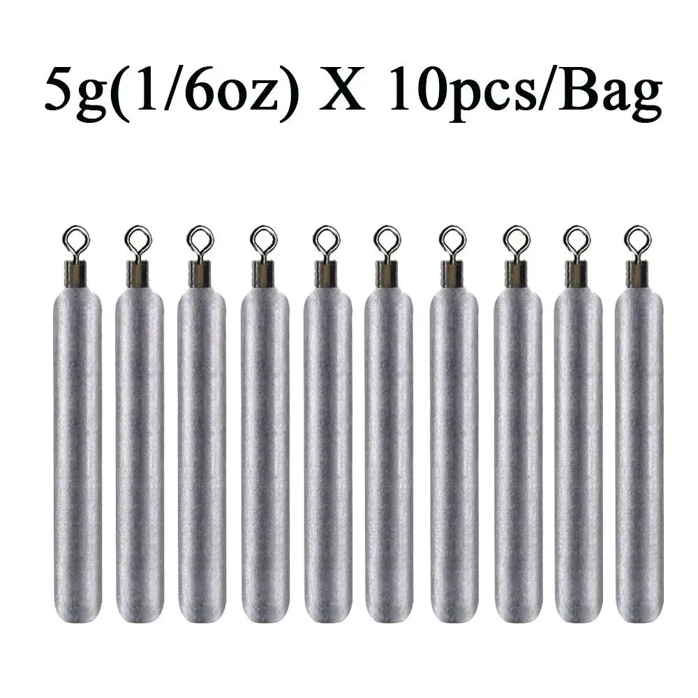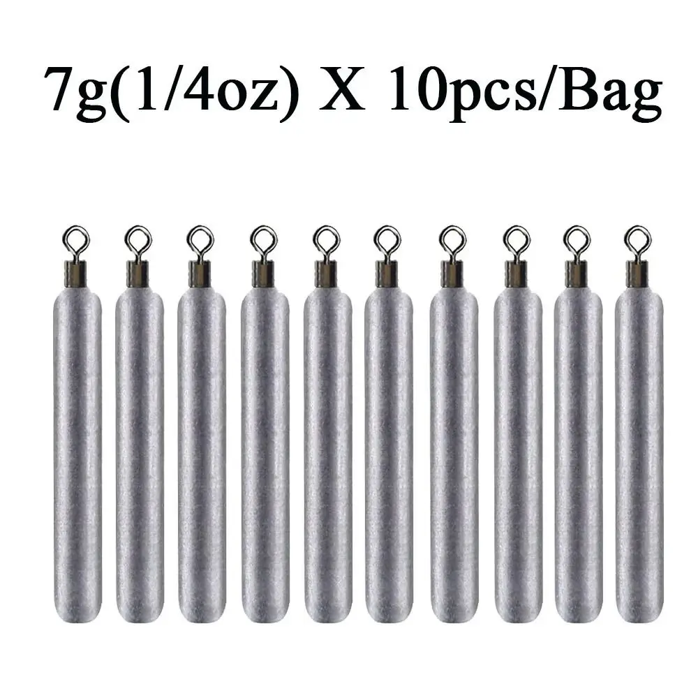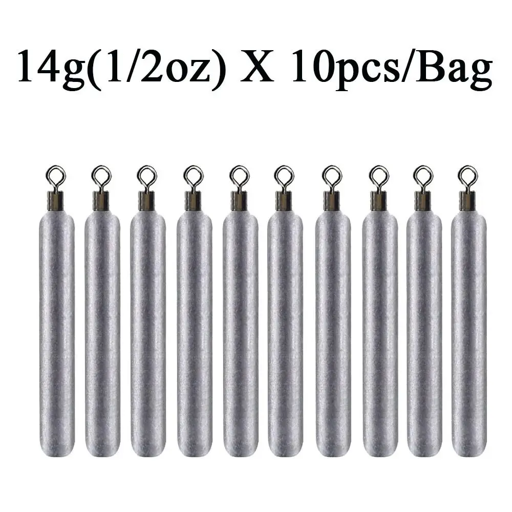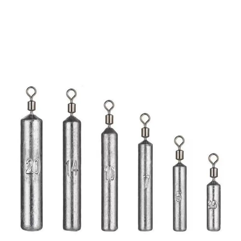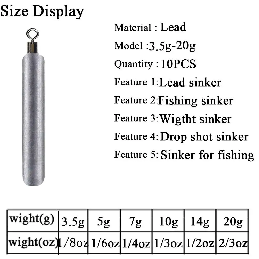 Plomos de pesca de varios tamaños Material: acero inoxidable Forma: forma cilíndrica Color: plata Tipo: aparejos de pesca Peso: 3,5G (1/8oz);5g(1/6oz); 7g(1/4oz); 10g(1/3oz); 14G (1/2oz); 20g(2/3oz) El paquete incluye: 10 unids/set plomos de pesca diseño de clip giratorio de rodamiento de bolas único, giratorio de 360 grados. Apto para todo tipo de competición de pesca profesional.