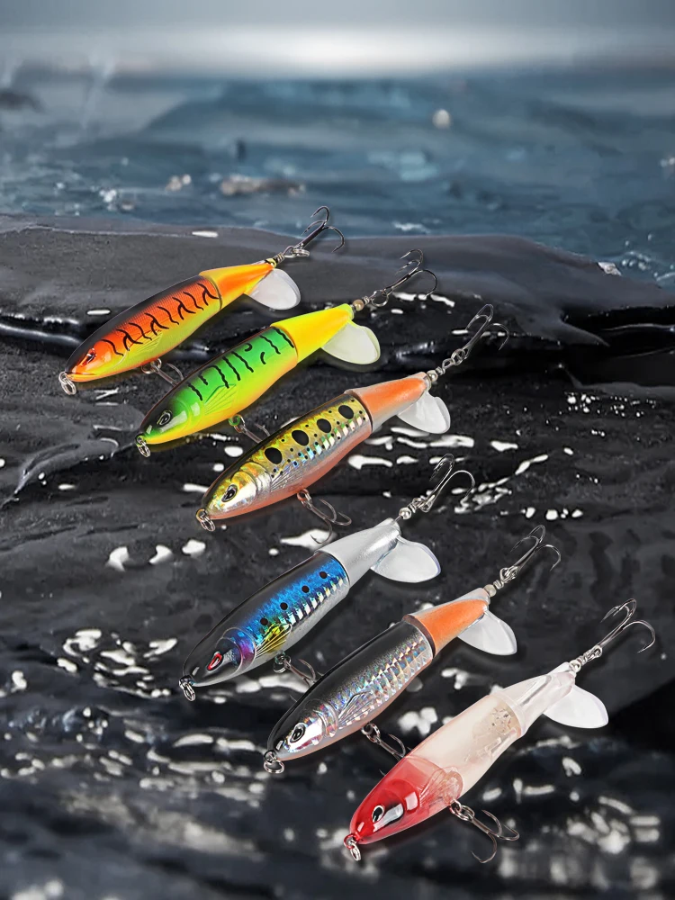 • Señuelo de superficie: este señuelo de hélice Whopper Plopper Popper está diseñado para la pesca de superficies, creando salpicaduras y ruidos que atraen a los peces de aguas más profundas.