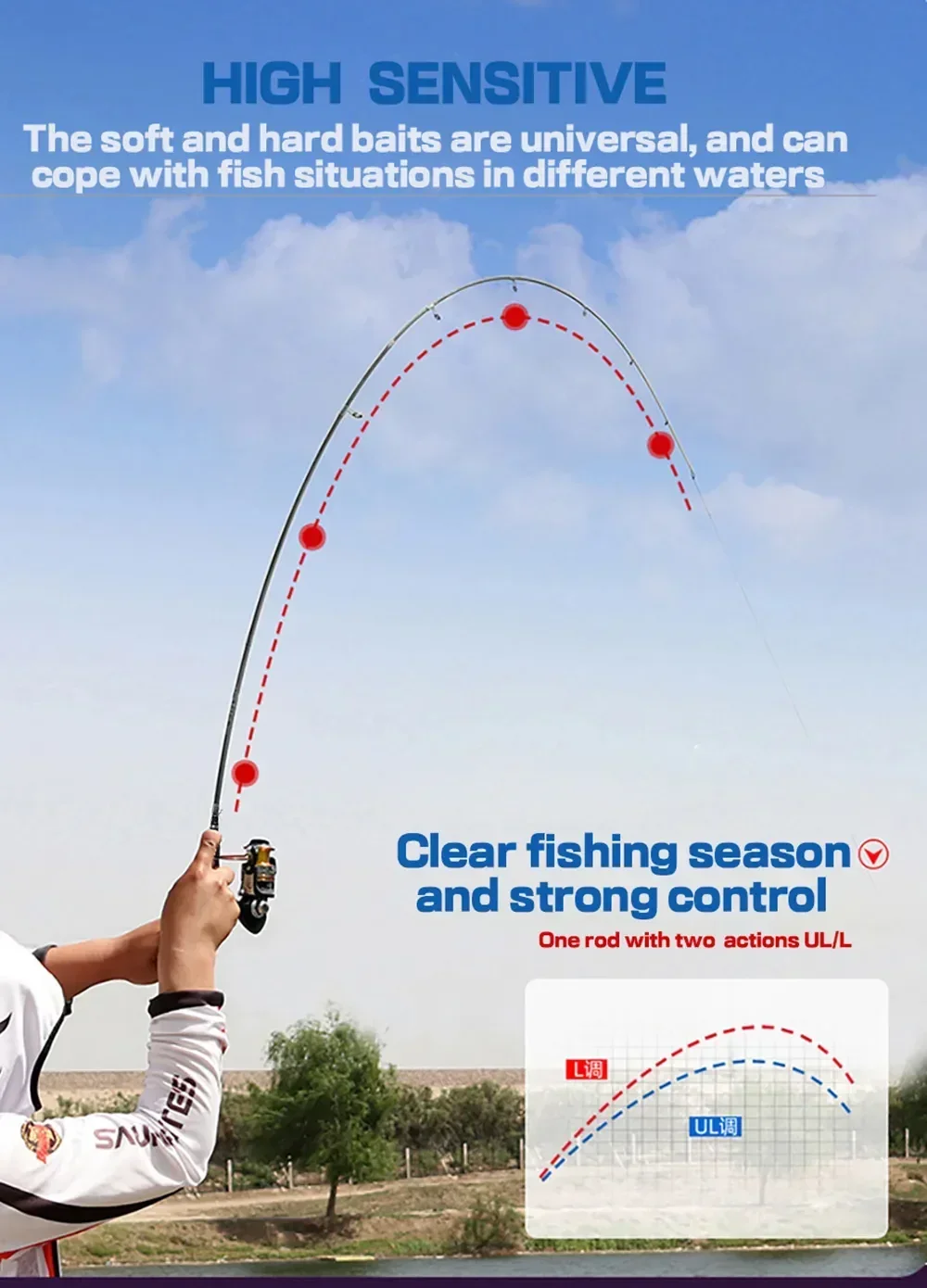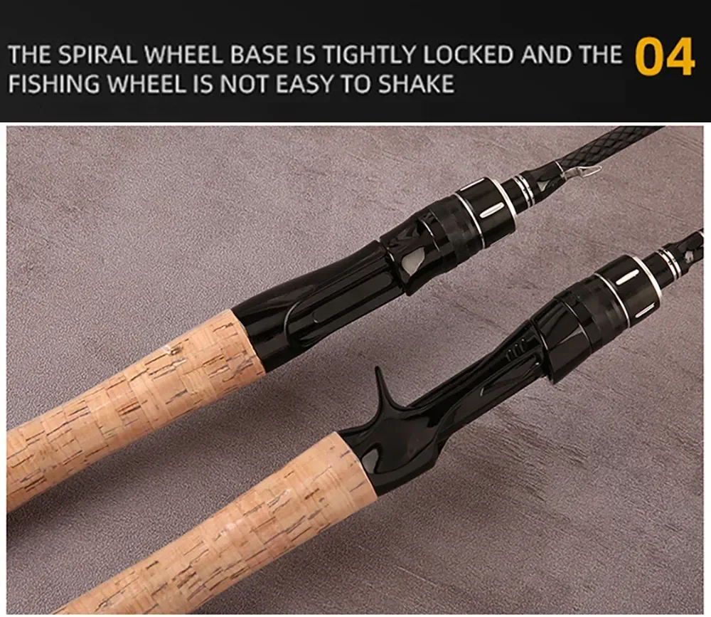 1. El cuerpo principal de la varilla está hecho de fibra de alto carbono.Ligero y con mejor rendimiento de detección, muy sensible.El asiento de tubería está hecho de nailon de alta resistencia moldeado por inyección integrado.El exterior utiliza la pintura artesanal para hornear piano.Colocación Mango intermediario de corcho.Antideslizante.Resistente al agua.
