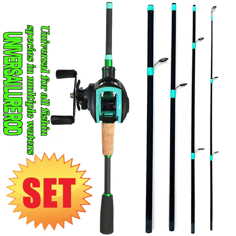 Combo de caña de pescar con señuelo de 4/5 secciones, caña ML giratoria/cocción de fibra de carbono de 1,8/2,1m y carrete de Baitcasting, arrastre máximo de 10kg para lubina