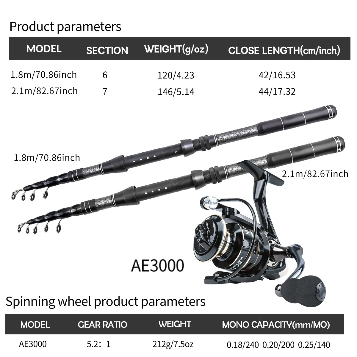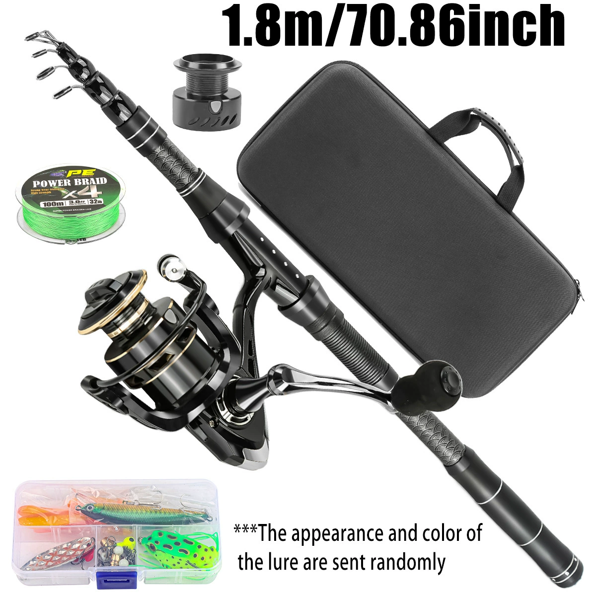 Juego combinado de caña de pescar telescópica y carrete giratorio con sedal, Kit de Señuelos de Pesca para agua dulce y salada