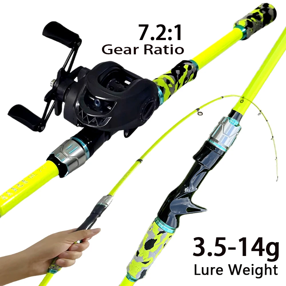 Combo de caña de pescar con señuelo de 4/5 secciones ML, caña de fundición de cebo de fibra de carbono de 1,8/2,1m y carrete de Baitcasting