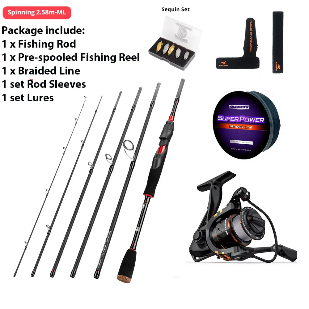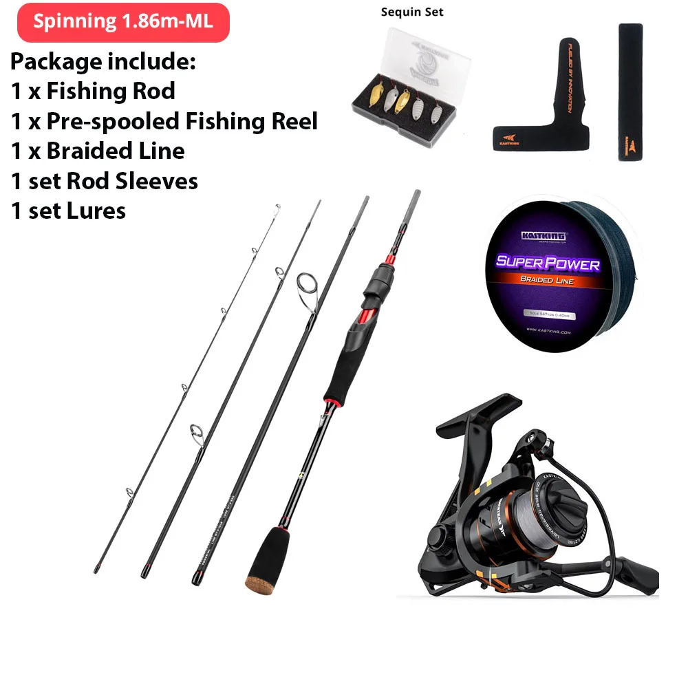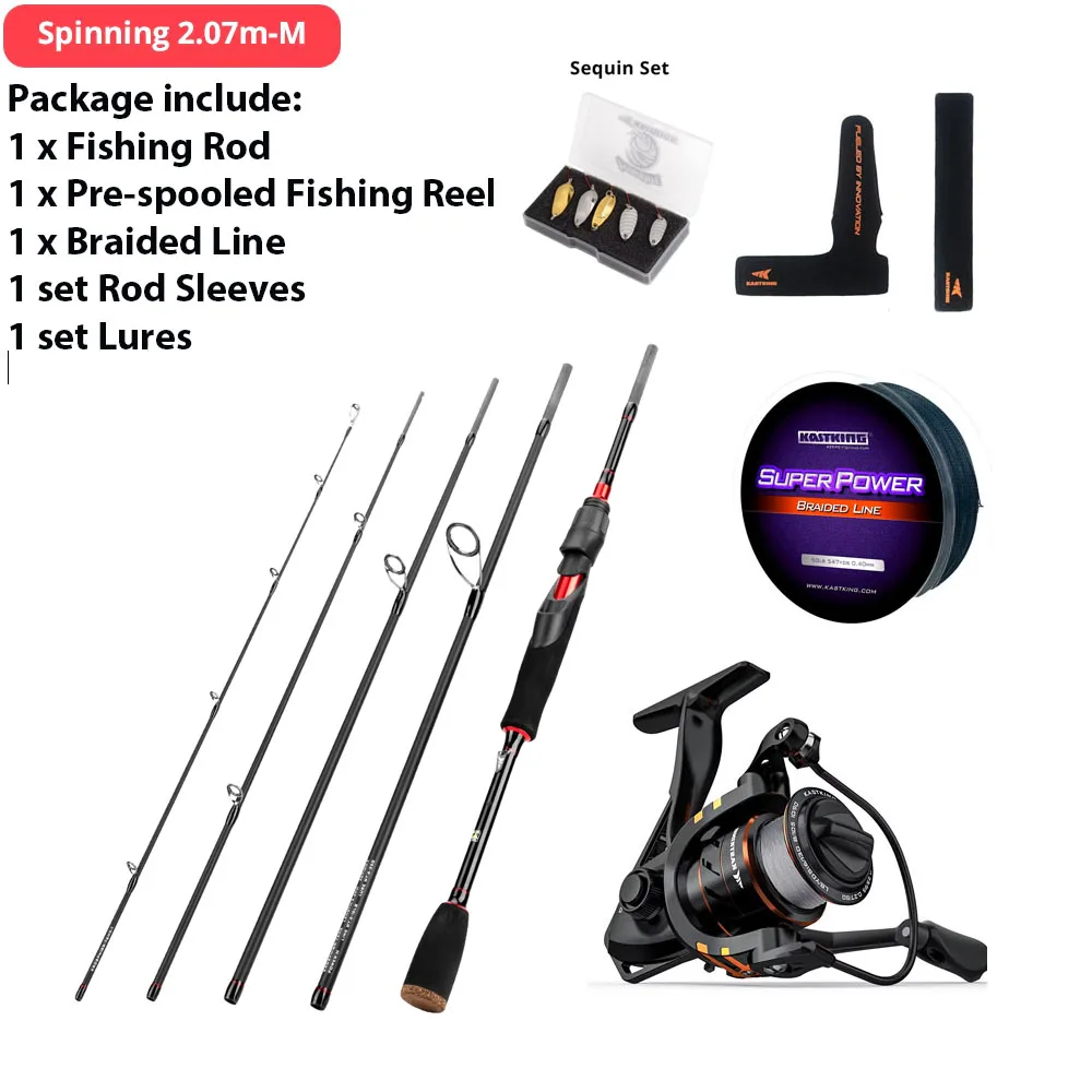 Juego combinado de carrete y varilla giratoria KastKingAcerca de la caña de pescar:1.Material: carbono 24T,Guías cerámicas