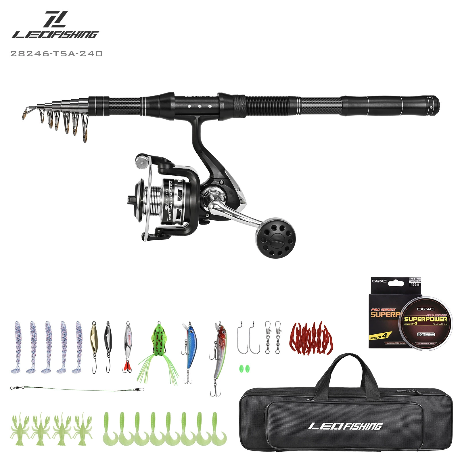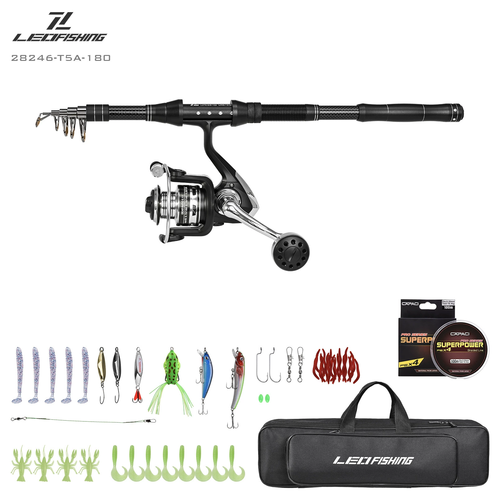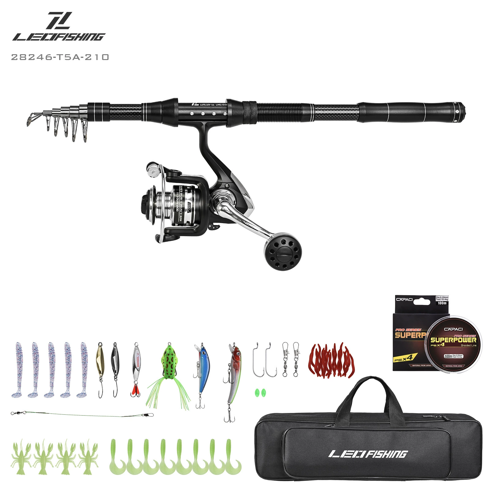 Juego de combos de carrete y caña de pescar telescópica, Kit de aparejos de fibra de carbono y bolsa de transporte para herramientas de pesca de agua salada y mar de viaje