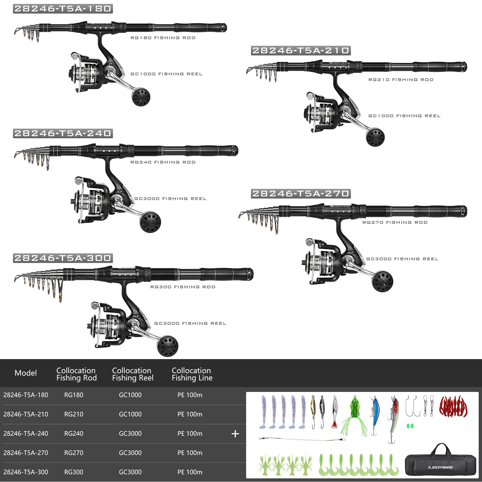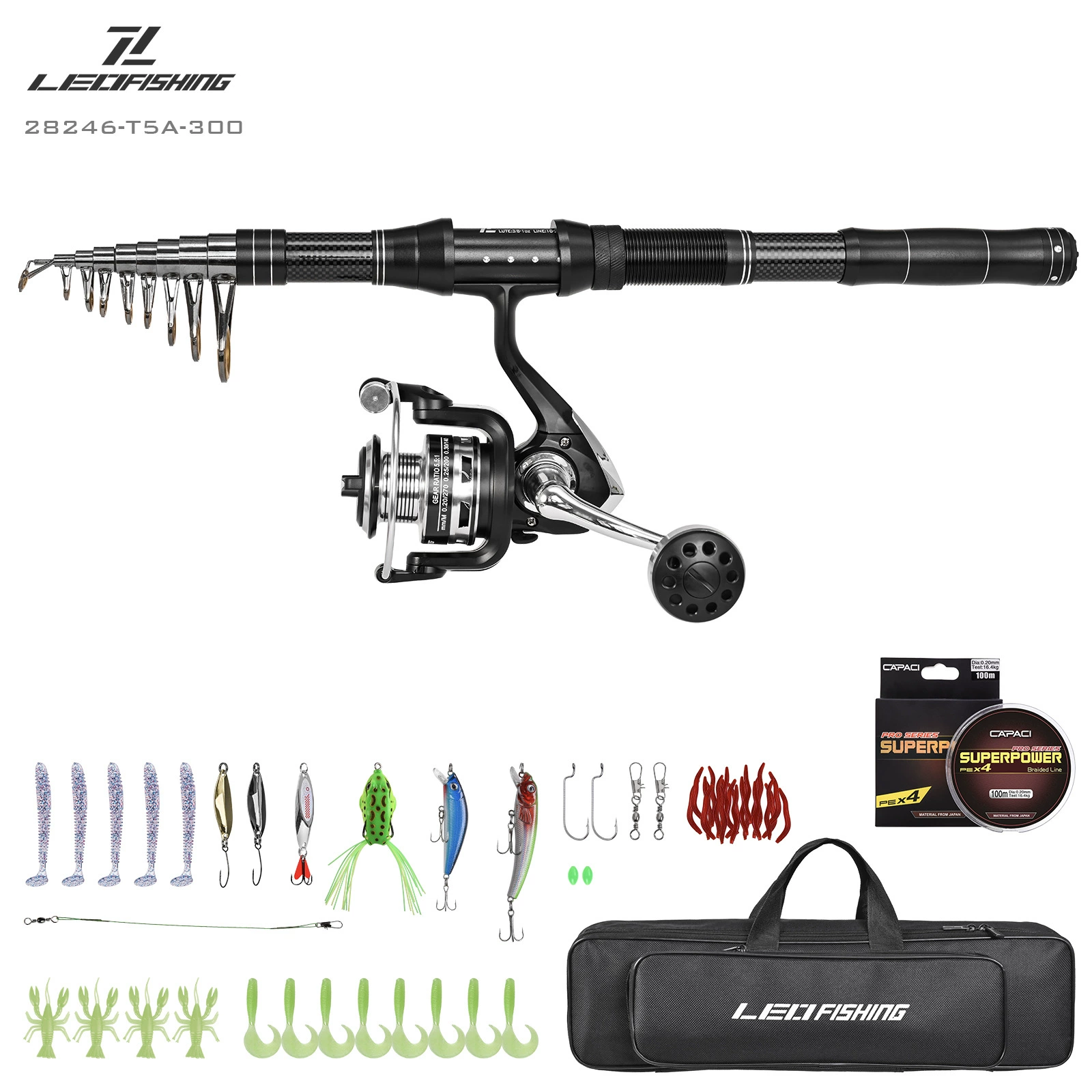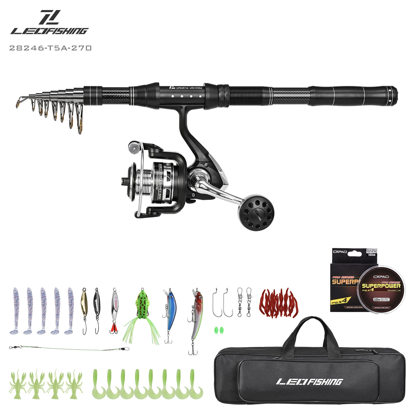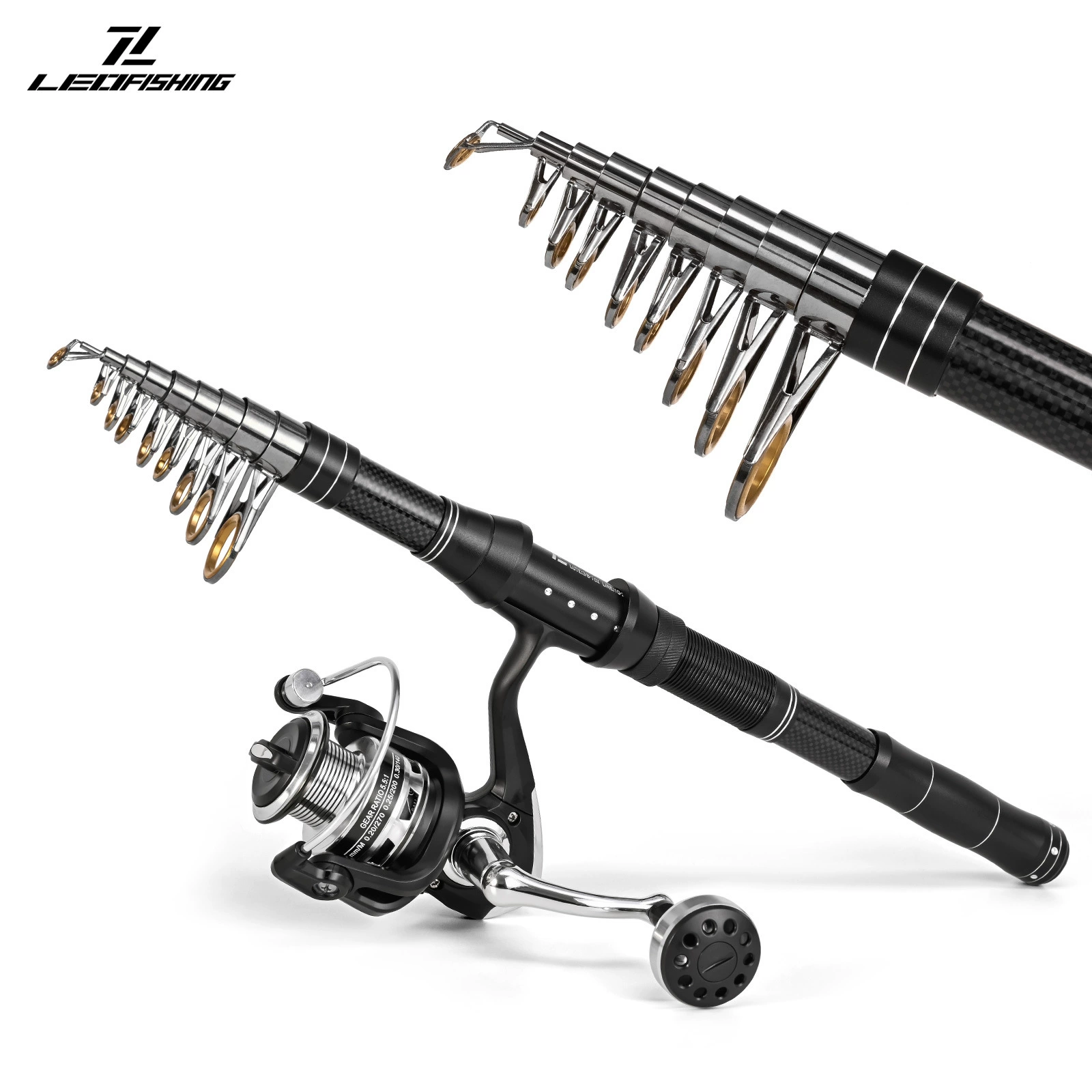 Juego de combos de carrete y caña de pescar telescópica, Kit de aparejos de fibra de carbono y bolsa de transporte para herramientas de pesca de agua salada y mar de viaje