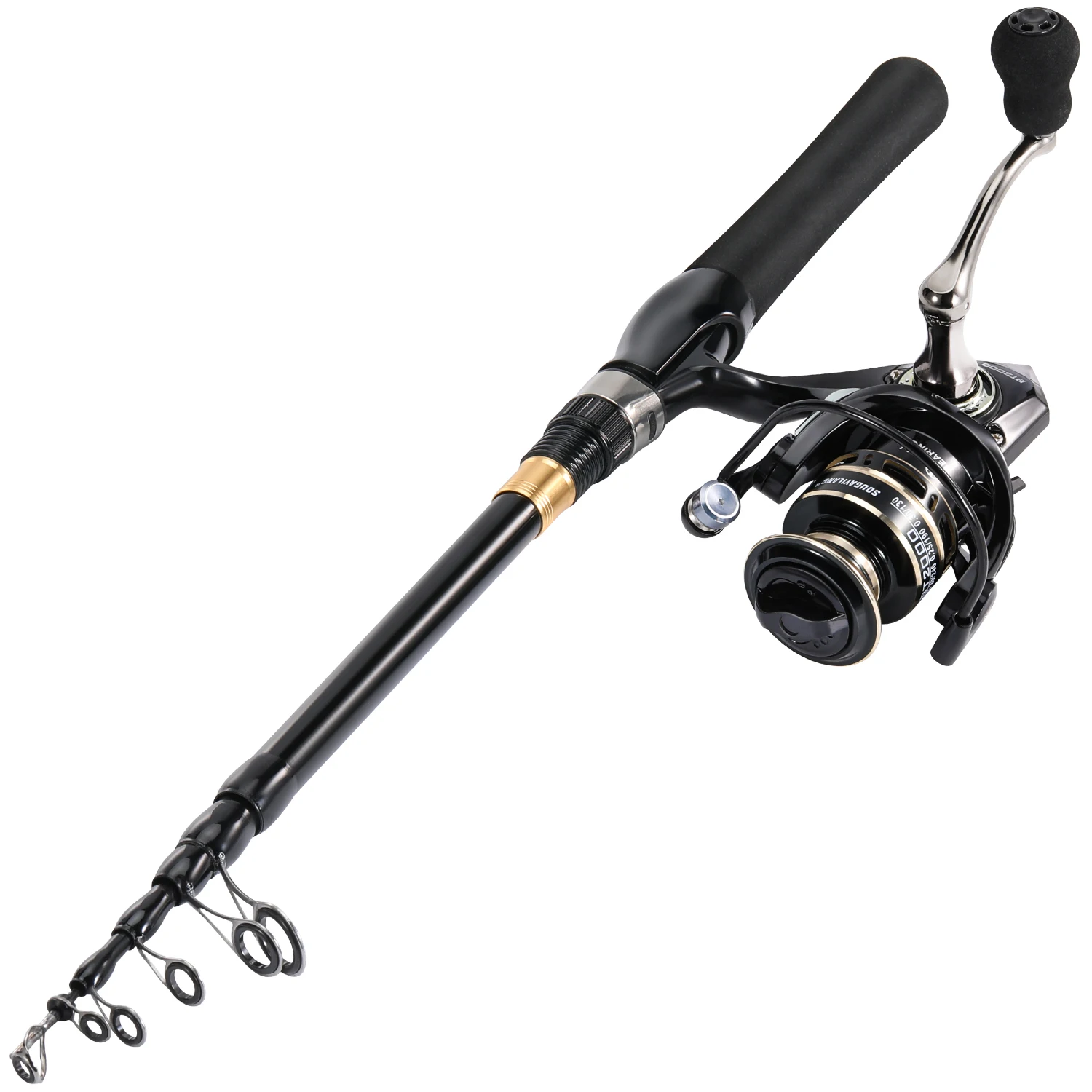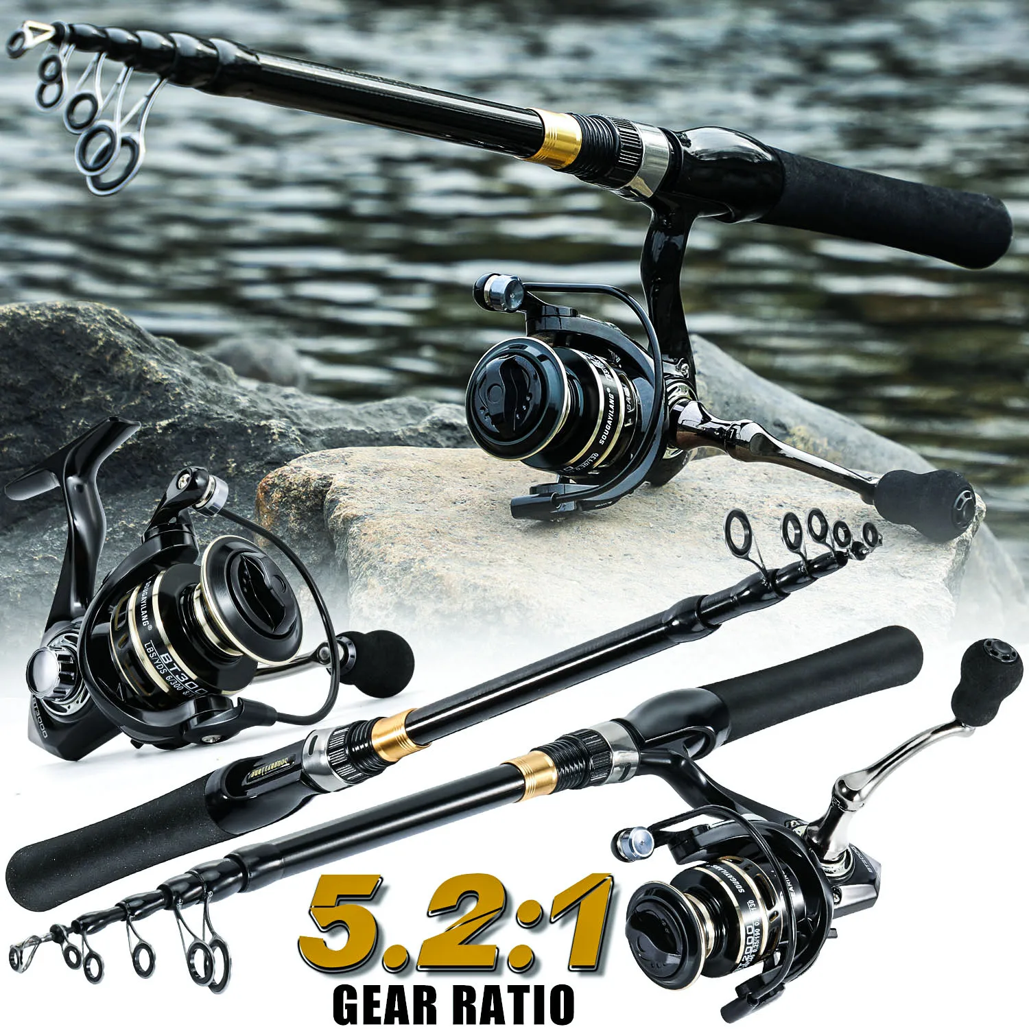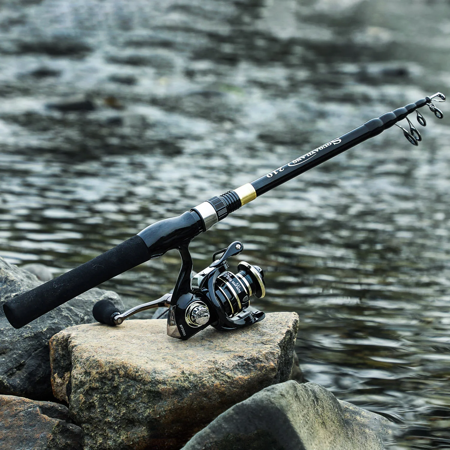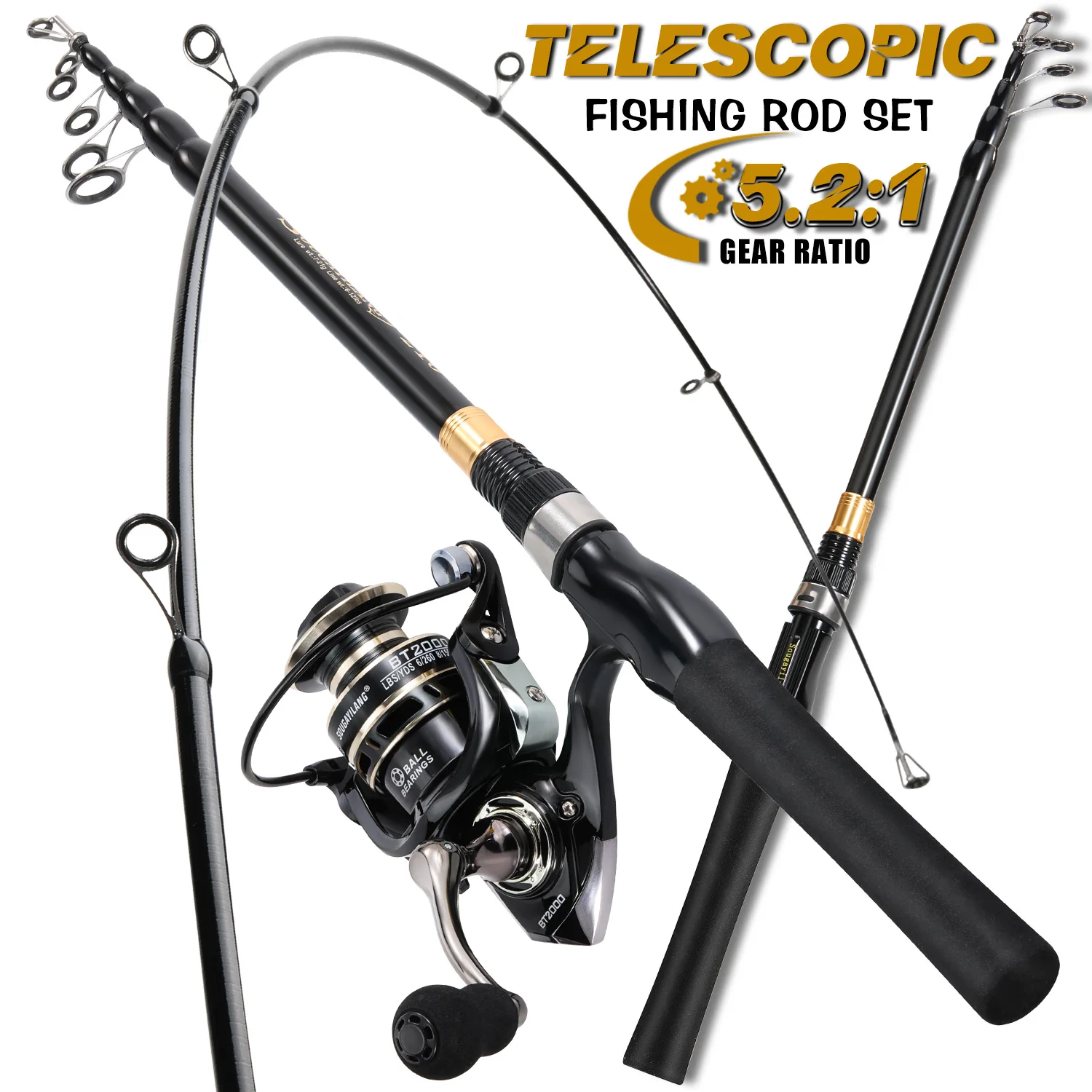Juego completo de caña de pescar Sougayilang con caña de pescar telescópica de fibra de carbono de 1,8 M 2,1 M y 2,4 M y juego de viaje de carrete giratorio 5,2:1