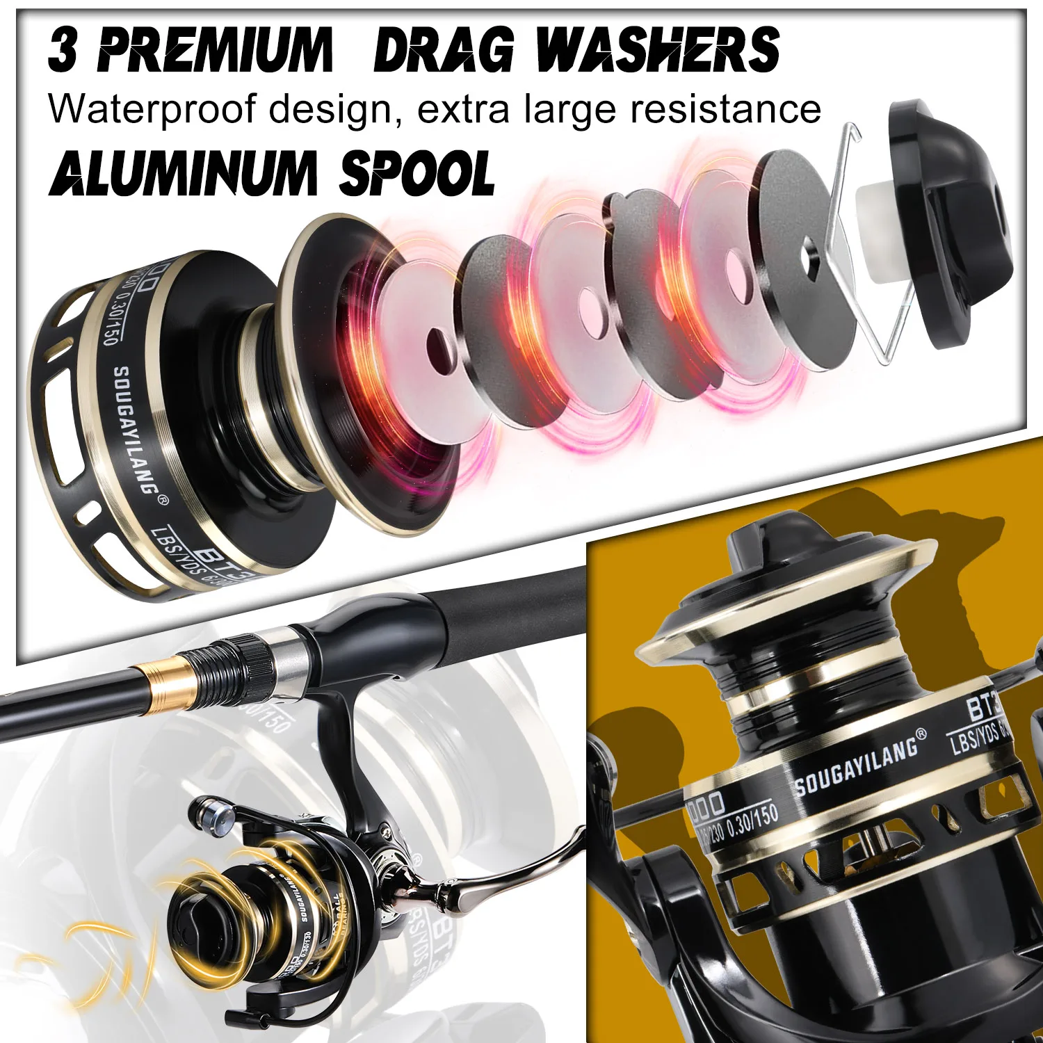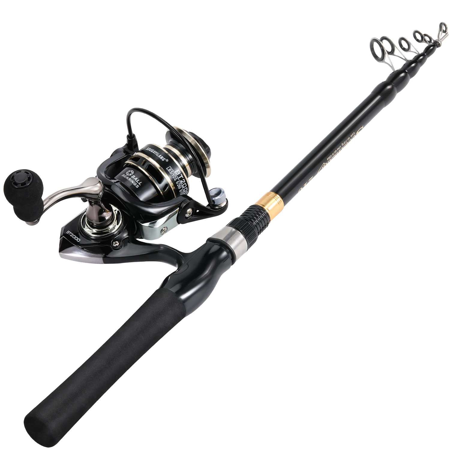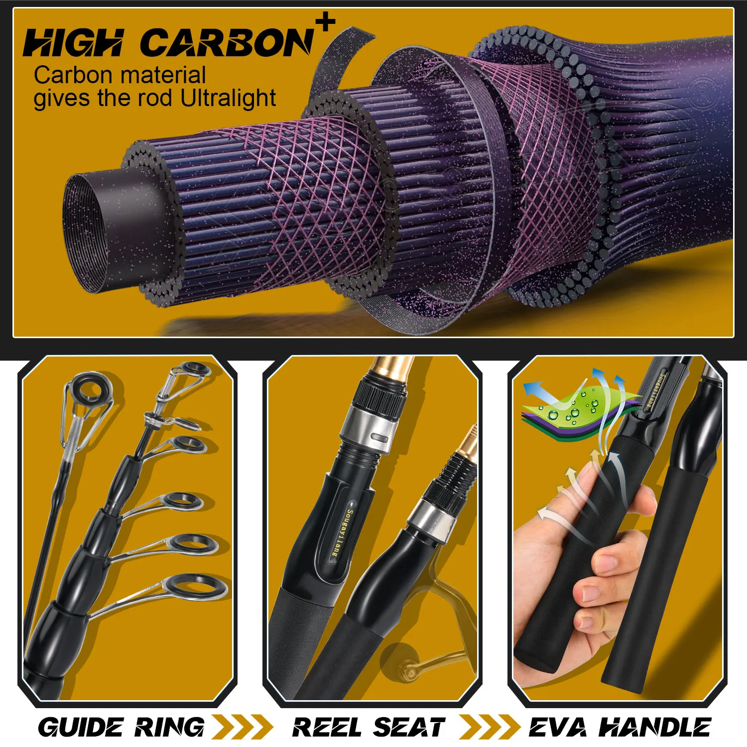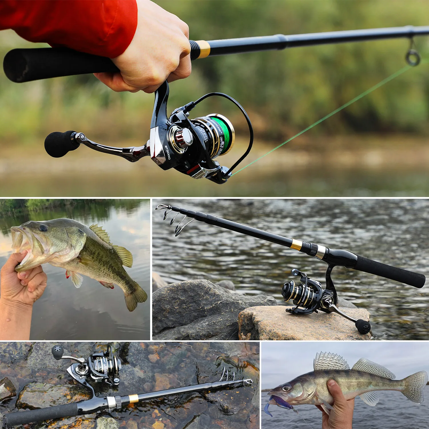 Juego completo de caña de pescar Sougayilang con caña de pescar telescópica de fibra de carbono de 1,8 M 2,1 M y 2,4 M y juego de viaje de carrete giratorio 5,2:1