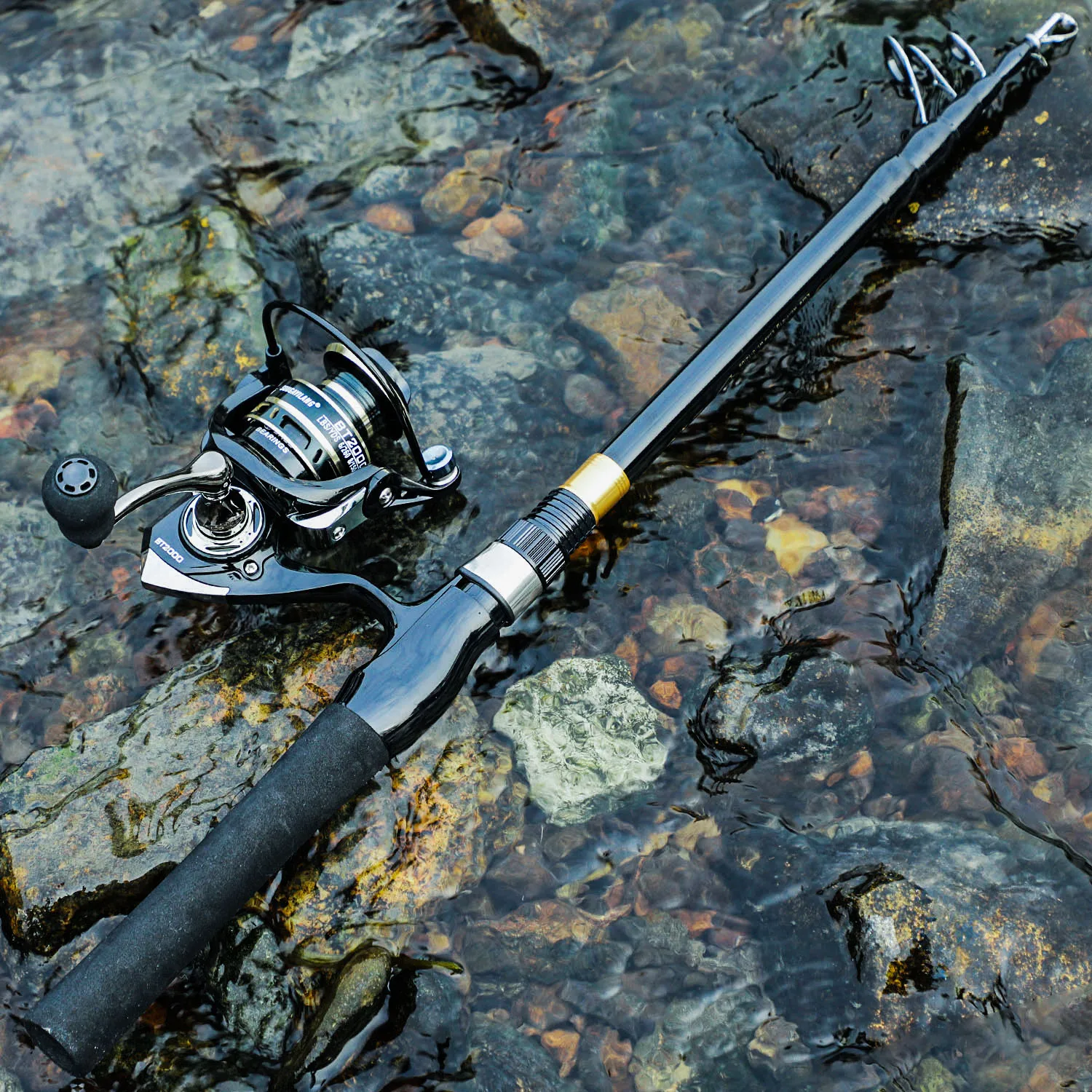 5.Diseño telescópico de vástago recto y experiencia fácil de usar: diseño telescópico de vástago recto, mango ergonómico, montaje rápido, gran durabilidad y experiencia de pesca de alta calidad.