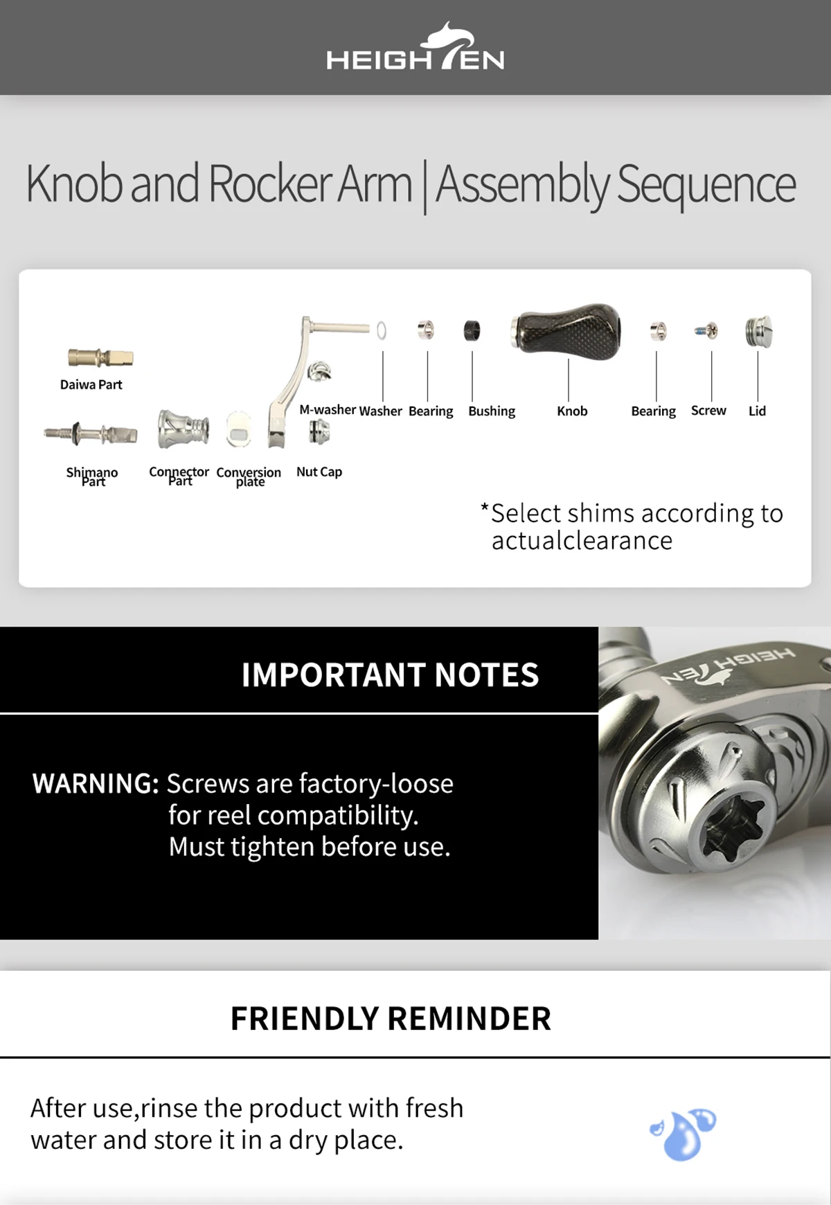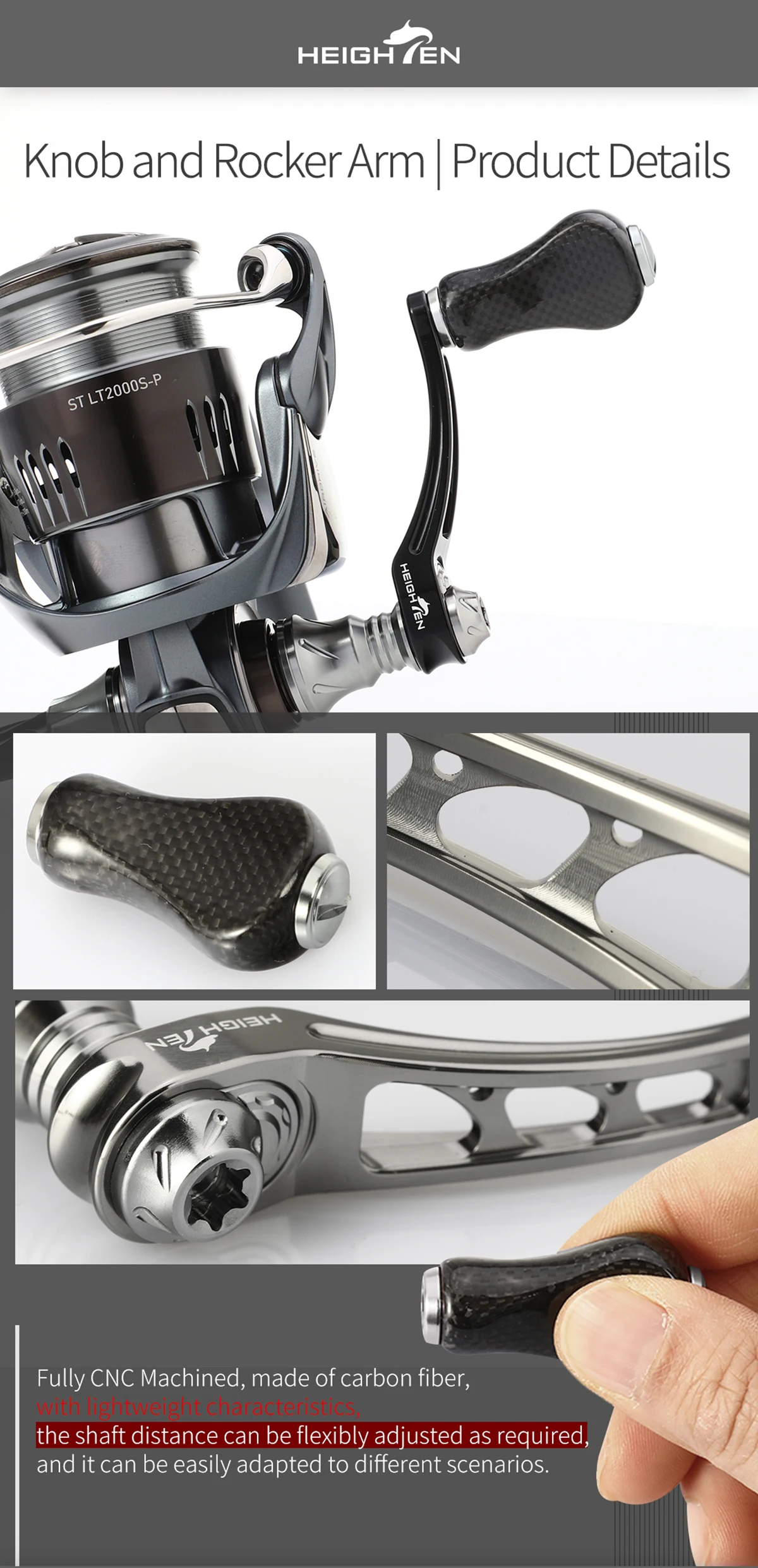 Juego completo de carrete giratorio HEIGHTEN de un solo mango, distancia del husillo ajustable (40 mm a 50 mm) y perillas de carbono de 20 mm | Compatible