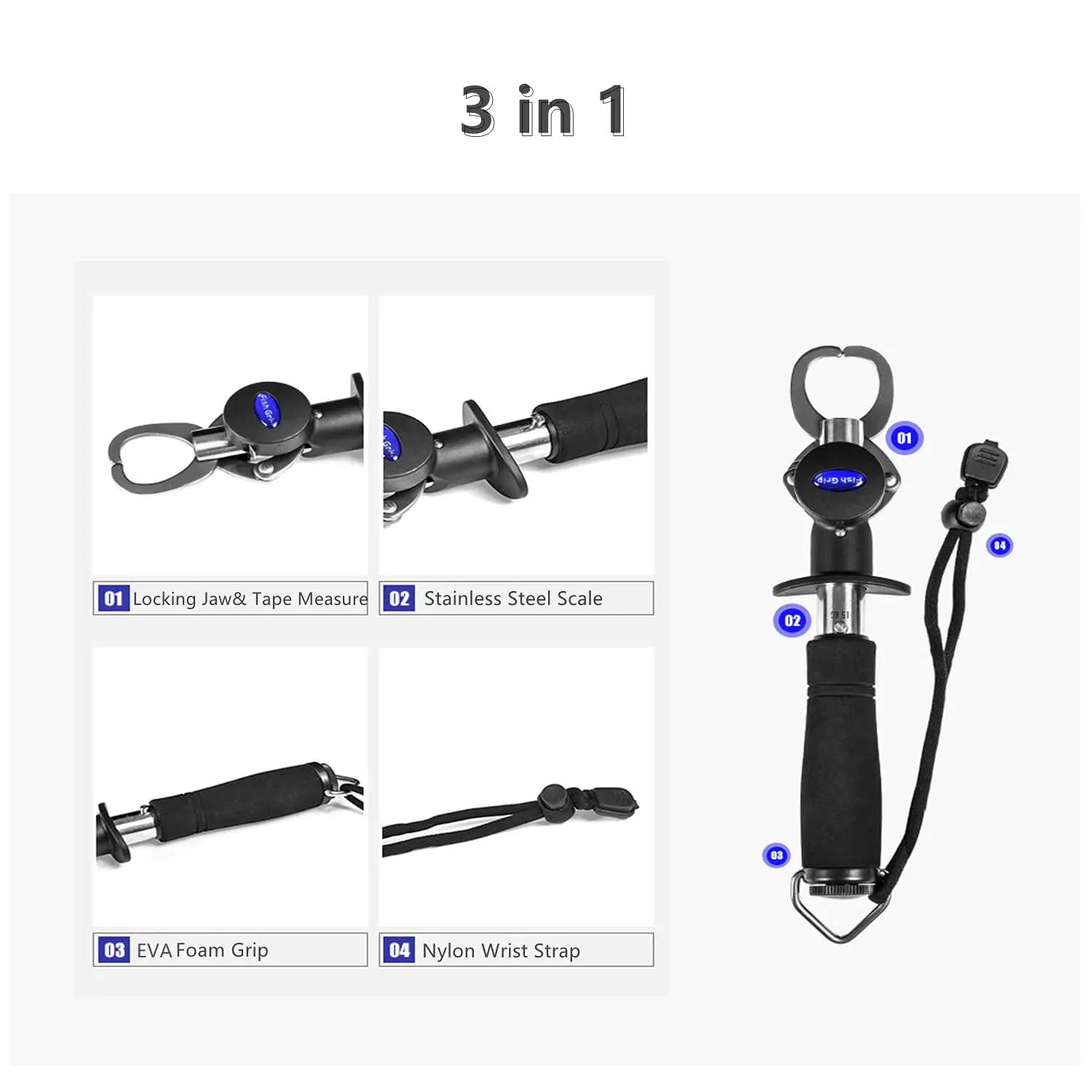 Juego de controlador y Alicates de agarre de labios de pescado, herramienta de agarre de soporte de pescado con regla de escala de peso, 3 en 1, 4 estilos