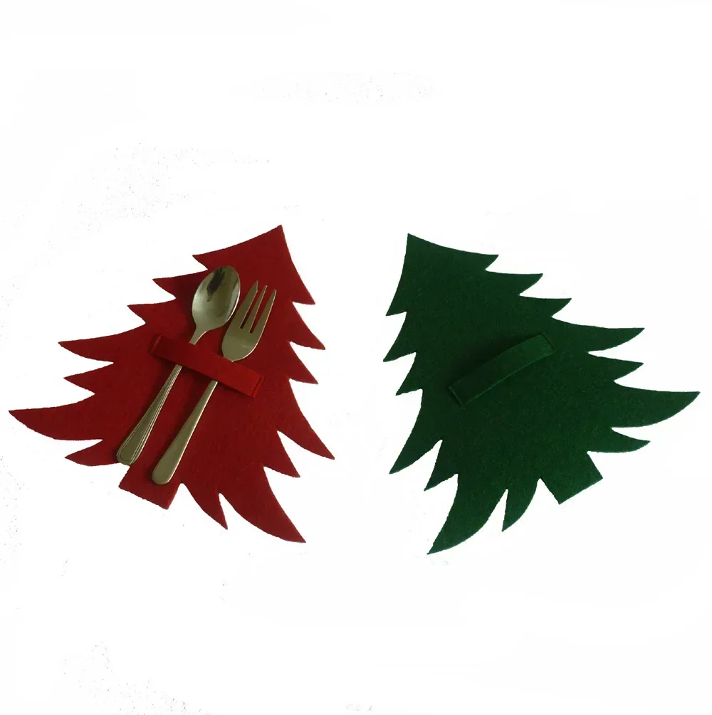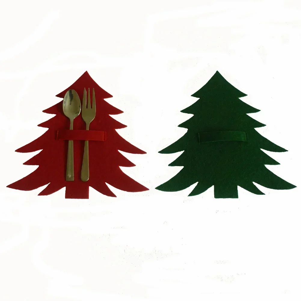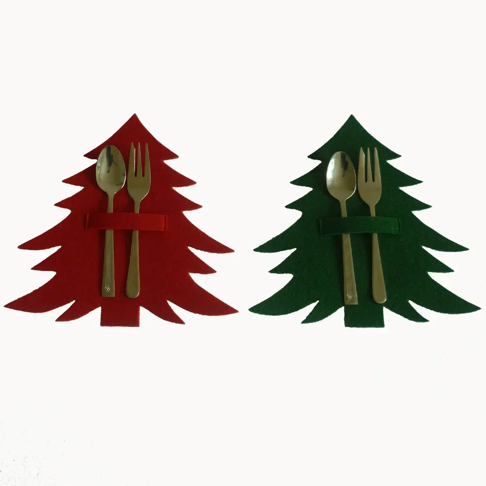 Juego de cubiertos de árbol de Navidad rojo y verde, tapete para cuchillo y tenedor, artículos de decoración de mesa, suministros de conveniencia para el hogar
