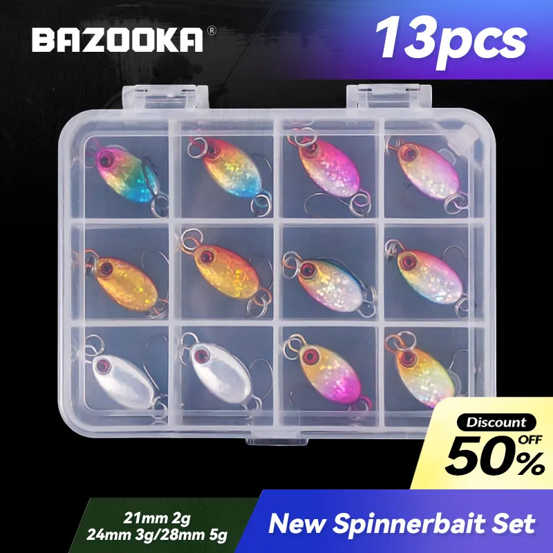 Juego de cuchara Bazooka, señuelo de pesca, Spinner de Metal, cebo para trucha, Leurre duro, Kit de plantilla Artificial de cobre Spinnerbait, aparejos de invierno con caja