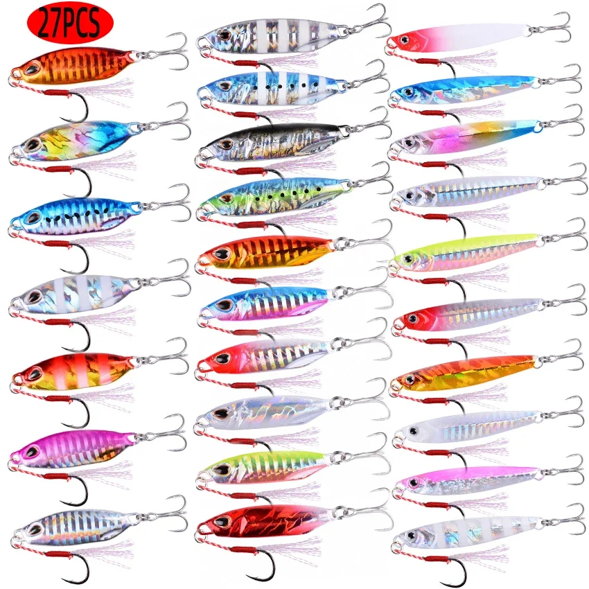 Juego de cucharas de plantilla fundidas de Metal, 27 Uds., 20/30/40/50g, fundición a tierra, Jigging, pesca, lubina, Señuelos de Pesca, aparejos de cebo Artificial