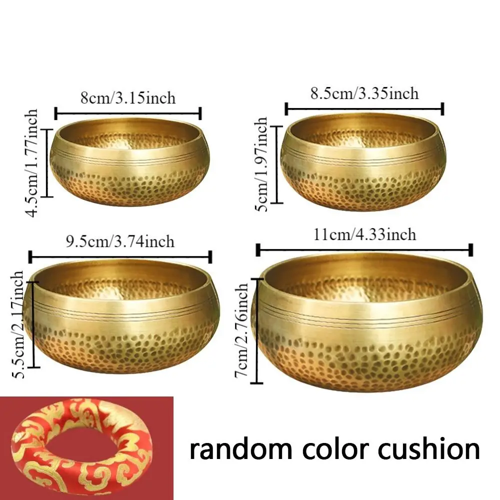 Producto incluido: cuenco de meditación hecho a mano x 1, cojín de seda cosido a mano x 1, mazo x 1. Un juego completo de cuenco tibetano para meditación y yoga.Nuestro cuenco tibetano puede caber en su mano, es portátil y perfecto para los requisitos mientras viaja.