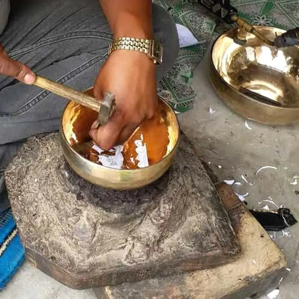 Sound Bowl CRAFTSMANSHIP - Hand hammered by the craftsmen specializing in Meditation Yoga Singing Bowls.Specially hand-sewn silk cushion highlighted the quality of the singing bowl set.Well-carved symbols and vivid patterns revealed the wholehearted process.