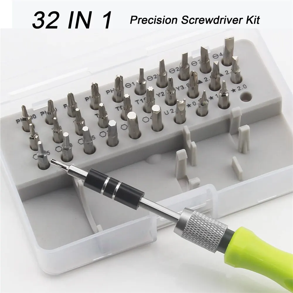 • 32 en 1 destornillador Set :Este juego de destornillador incluye 32 puntas de destornillador diferentes, lo que lo convierte en una herramienta versátil para una variedad de tareas.