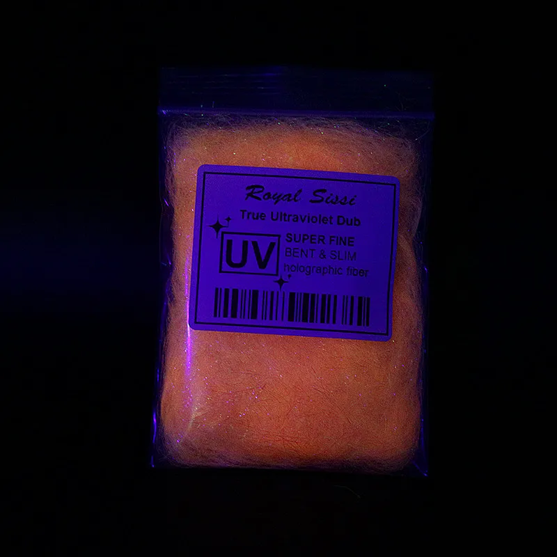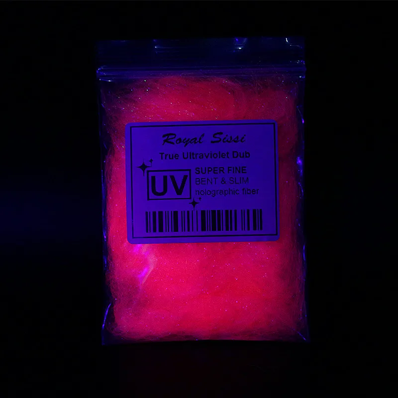 5 Colors/set UV light ice dubbing ultraviolet reflective synthetic Fibers UV colors ice dub fiber Synthetic Fly Tying MaterialsFeatures: UV ice dub, the most popular dubbing material in the market. soft, shiny, clean-looking, bright, translucent quality it possesses. Dubs as easy as natural fur, use it for collars on emergers, mix it in with hair dubbing for stonefly nymphs, add beards to streamers and on and on.
